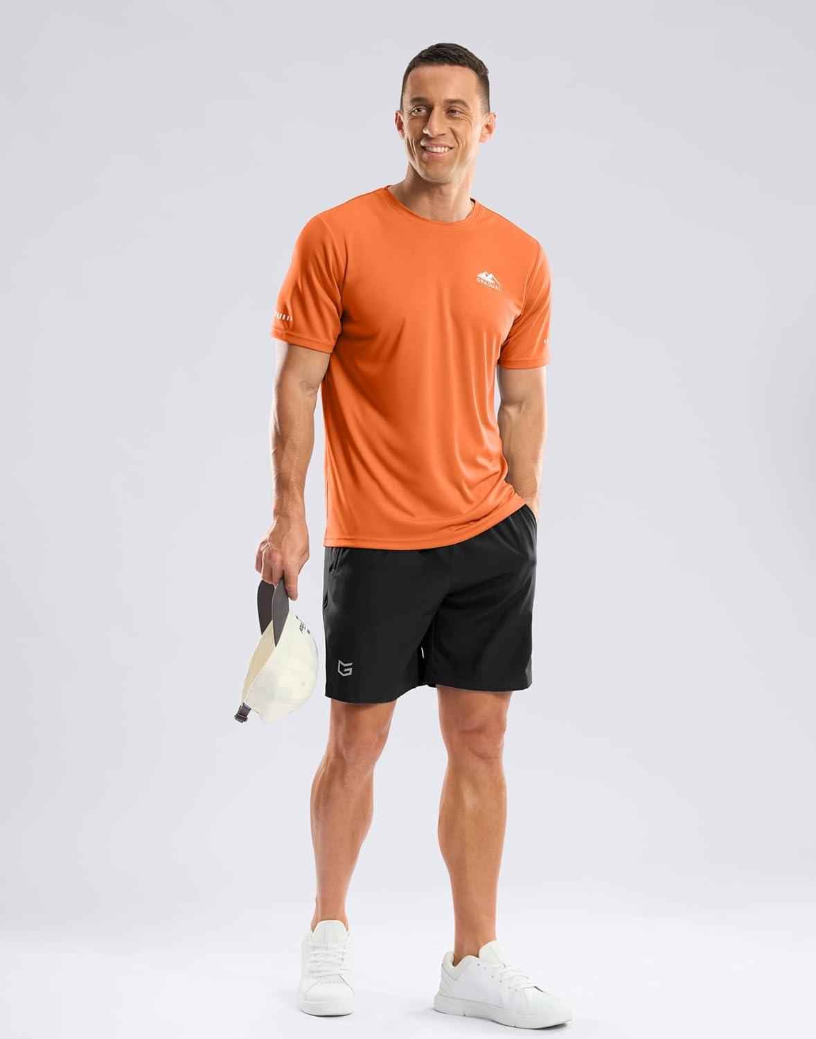 Men's UPF 50+ Sun Protection Dry Fit Workout T-Shirts Rash Guard Swim Shirts Moisture Wicking Tee for Athletic, Beach, Hiking(Orange)