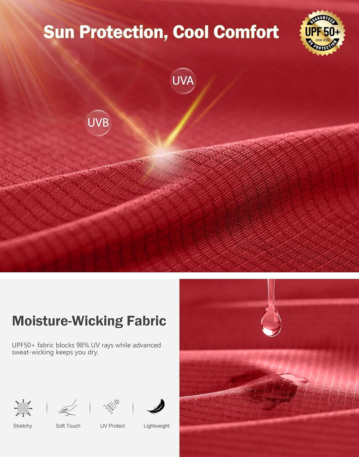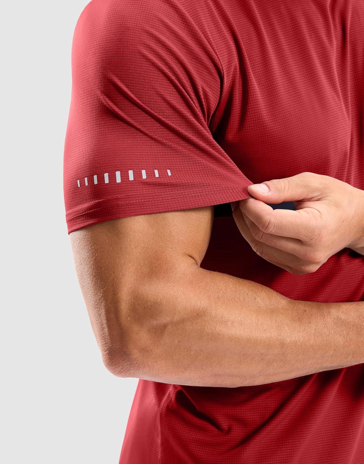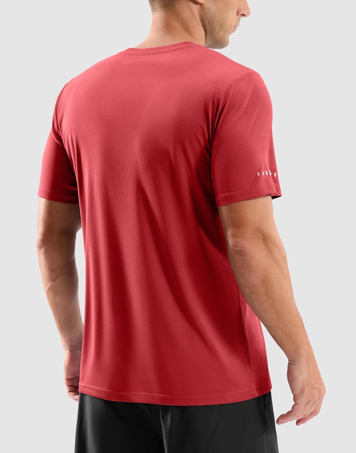 Men's Workout Breathable T-Shirts Dry Fit UPF 50+ Sun Shirts Lightweight Cooling Tee for Athletic, Running, Hiking(Red)