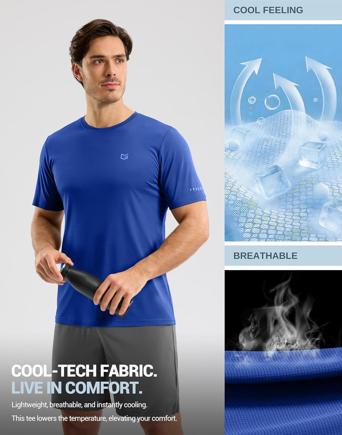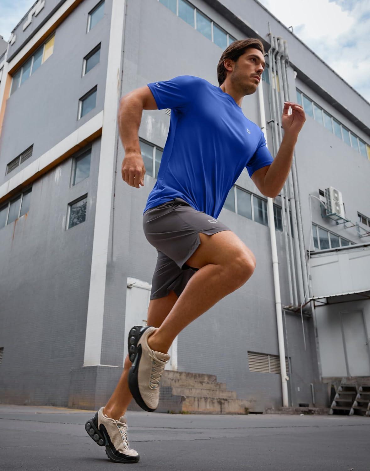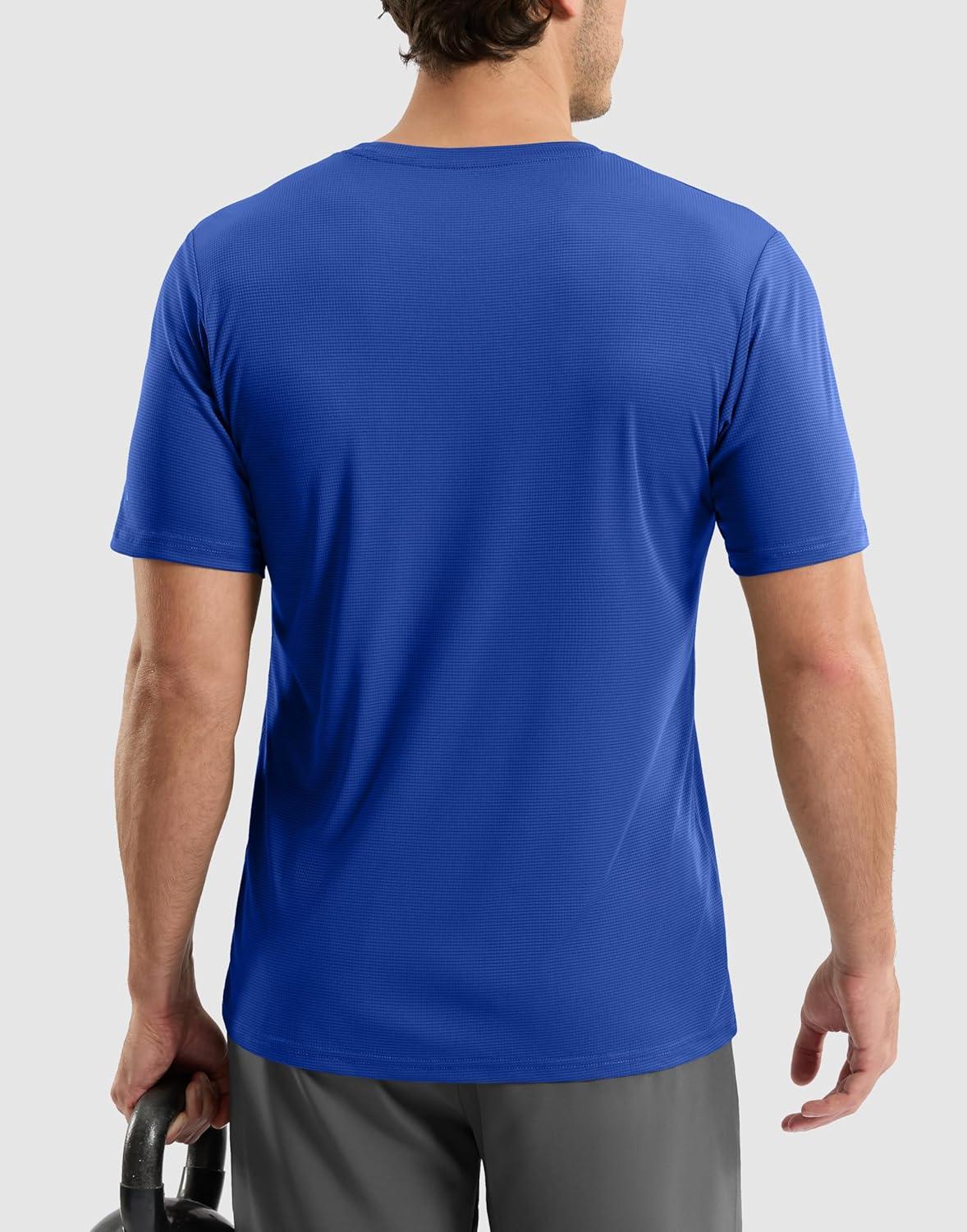 Men’s Workout Breathable T-Shirts Dry Fit UPF 50+ Sun Shirts Lightweight Cooling Tee for Athletic, Running, Hiking(Sapphire Blue)