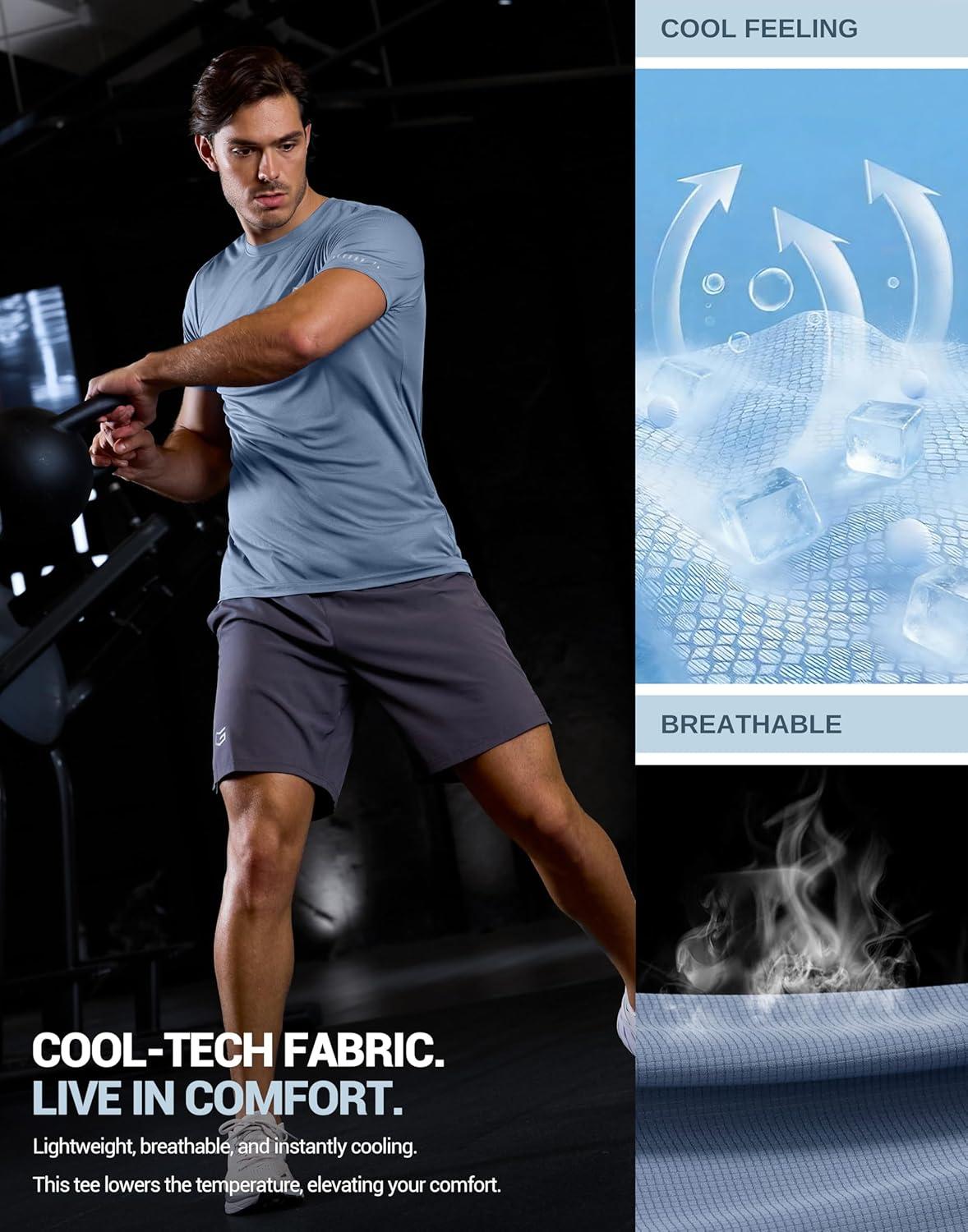 Men's Workout Breathable T-Shirts Dry Fit UPF 50+ Sun Shirts Lightweight Cooling Tee for Athletic, Running, Hiking(Slate Blue)