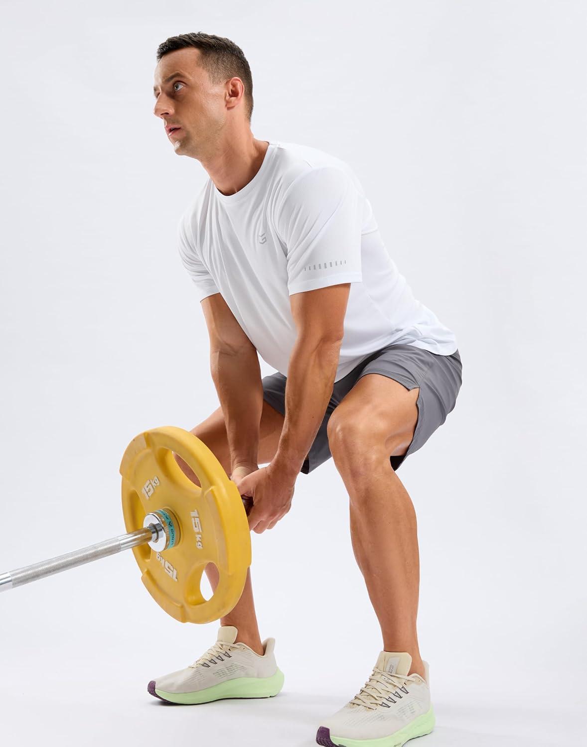 Men’s Workout Breathable T-Shirts Dry Fit UPF 50+ Sun Shirts Lightweight Cooling Tee for Athletic, Running, Hiking(White)