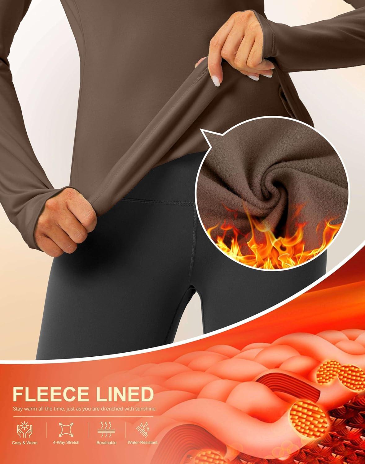 imageThermal Shirts for Women Long Sleeve Mock Neck Fleece Tops Running Workout Cold Weather Gear with Zip PocketBrown
