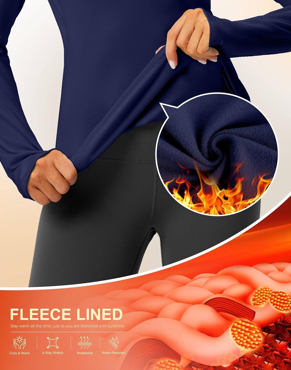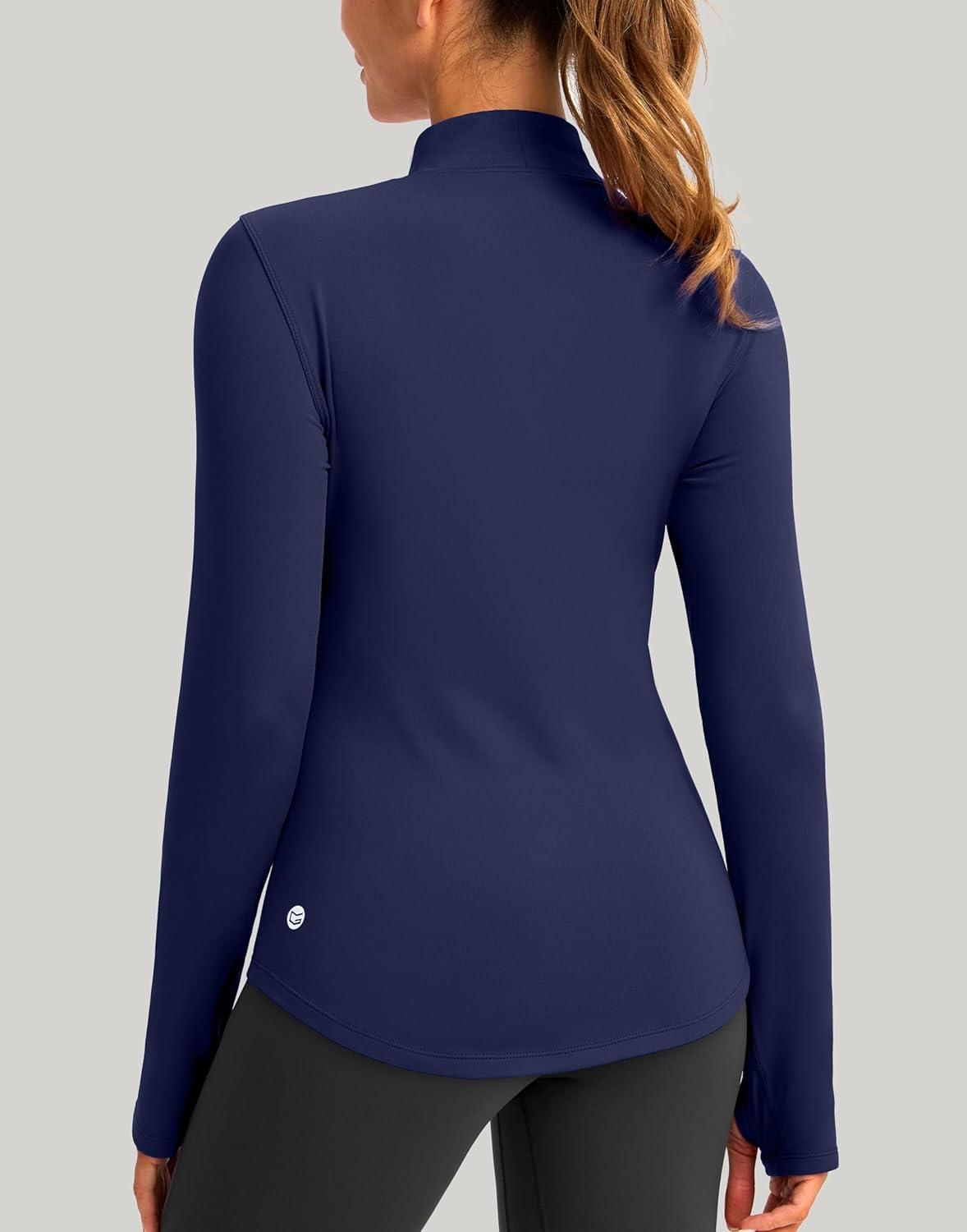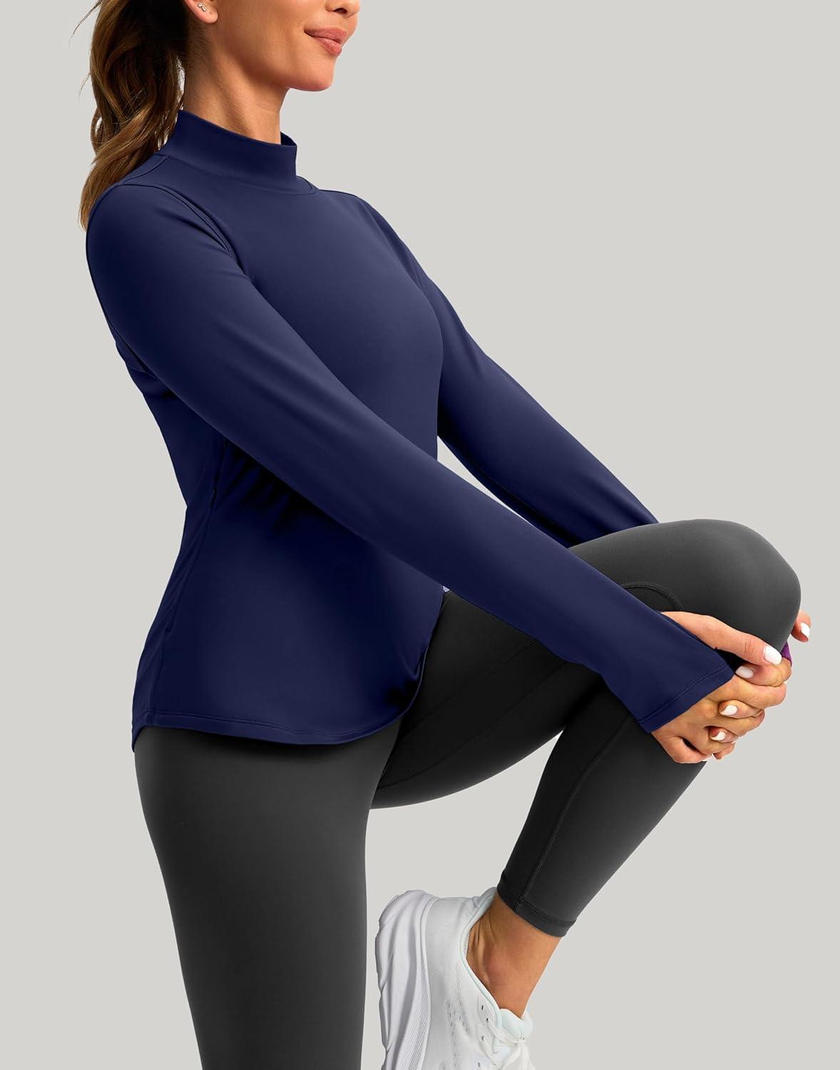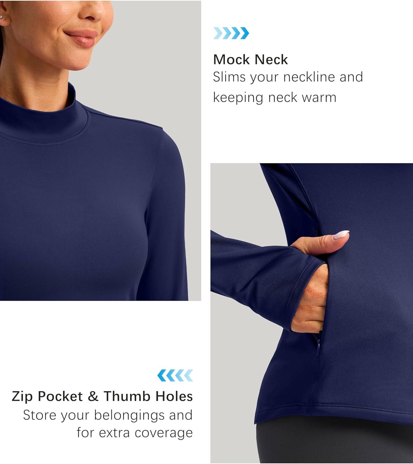 Thermal Shirts for Women Long Sleeve Mock Neck Fleece Tops Running Workout Cold Weather Gear with Zip Pocket(Navy)