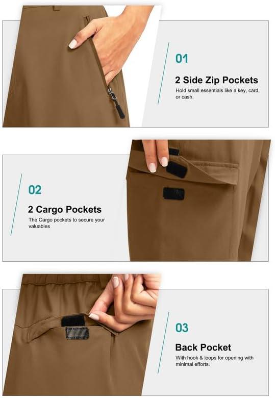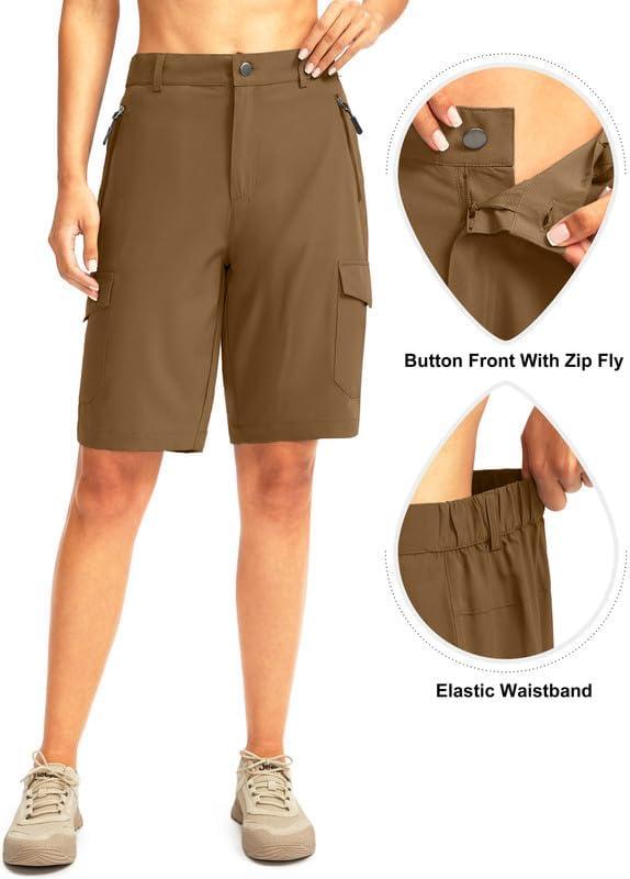 imageWomens 10 Hiking Golf Long Shorts with 5 Pockets Knee Length Lightweight Quick Dry Cargo Bermuda Shorts for WomenBrown