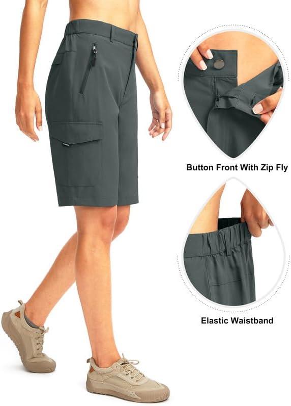 Women’s 10″ Hiking Golf Long Shorts with 5 Pockets Knee Length Lightweight Quick Dry Cargo Bermuda Shorts for Women(Dark Grey)