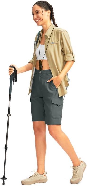 Women’s 10″ Hiking Golf Long Shorts with 5 Pockets Knee Length Lightweight Quick Dry Cargo Bermuda Shorts for Women(Dusty Blue)