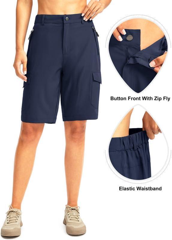 Women’s 10″ Hiking Golf Long Shorts with 5 Pockets Knee Length Lightweight Quick Dry Cargo Bermuda Shorts for Women(Navy)