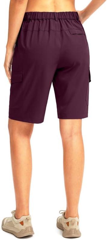 imageWomens 10 Hiking Golf Long Shorts with 5 Pockets Knee Length Lightweight Quick Dry Cargo Bermuda Shorts for WomenWine