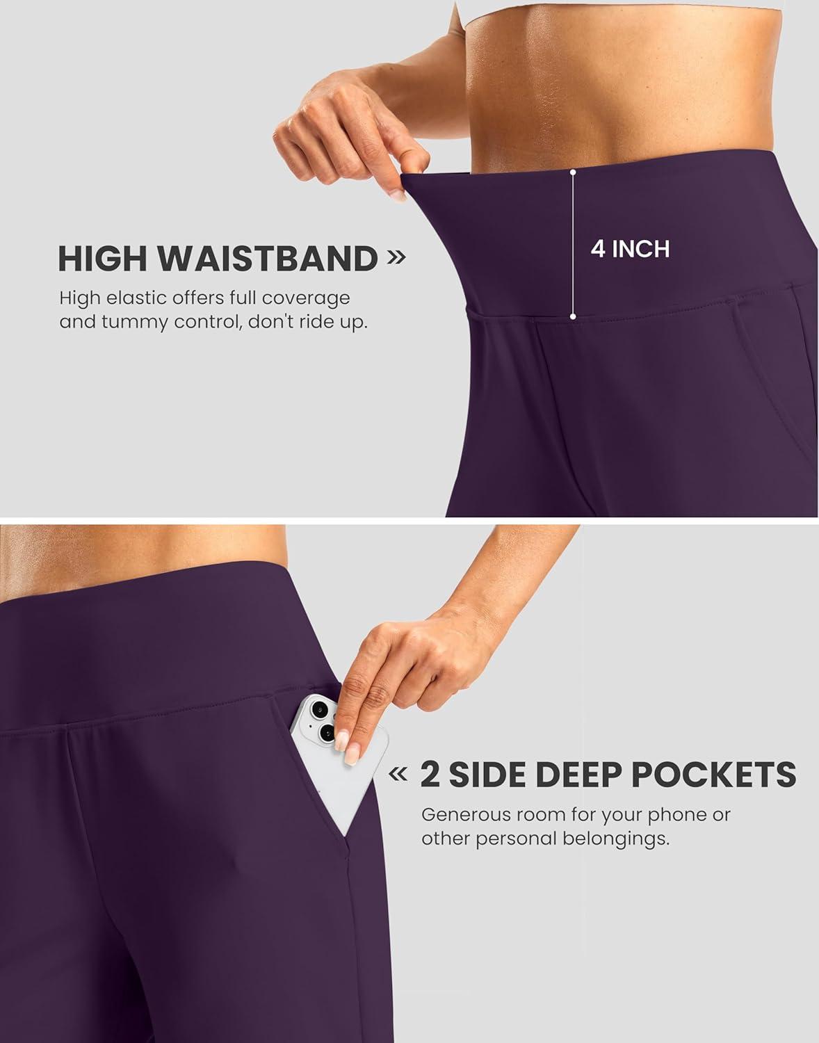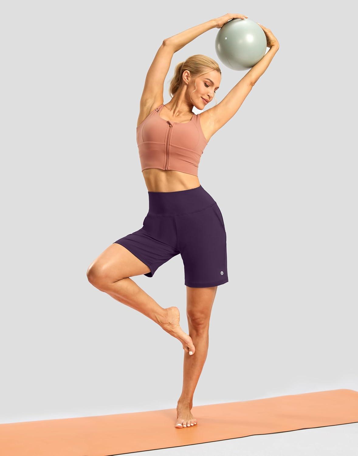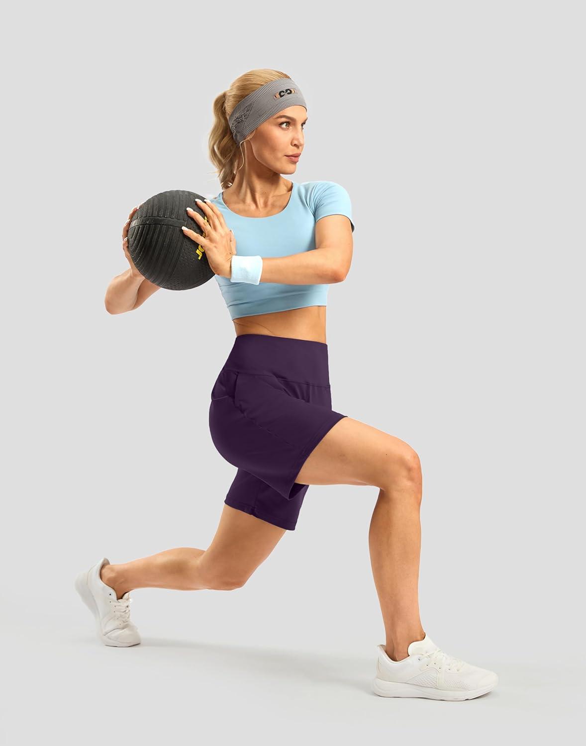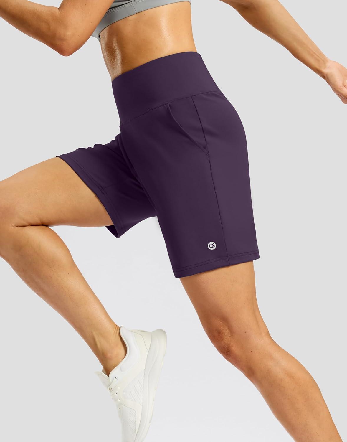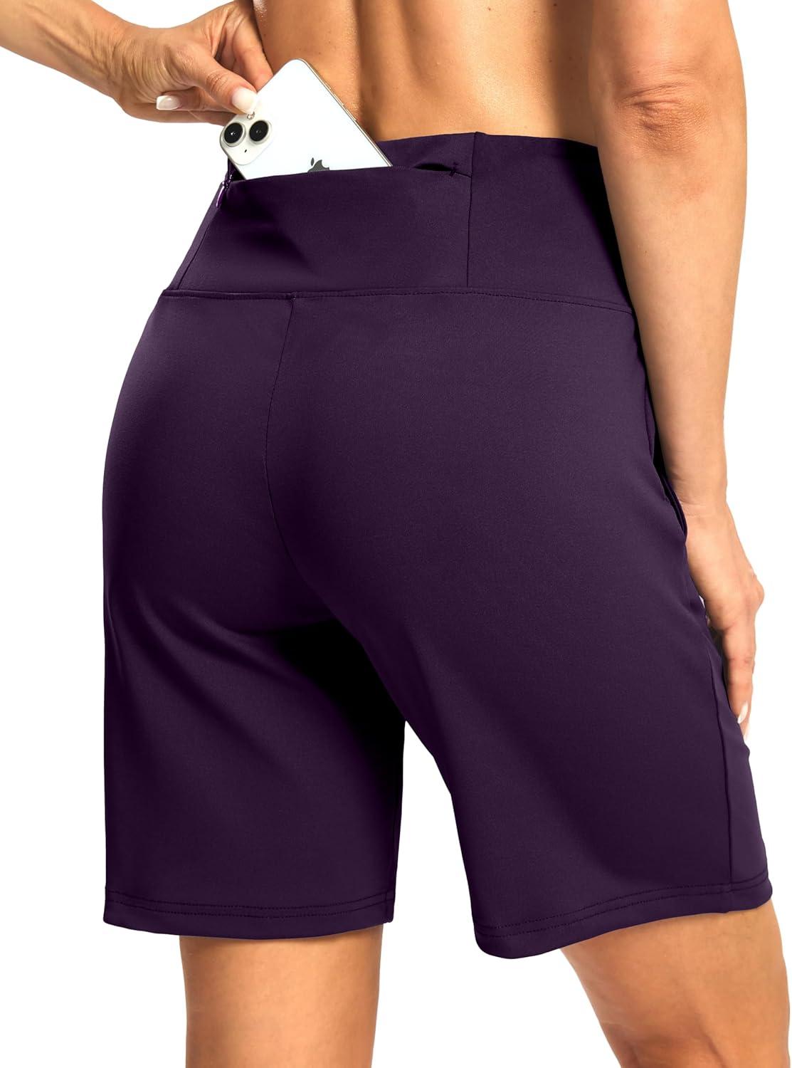 Women’s Athletic Shorts with Zipper Pocket 7″ High Waisted Stretchy Bermuda Shorts for Women Workout Running Casual(Purple)