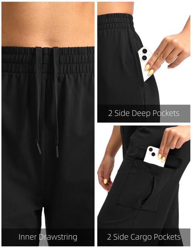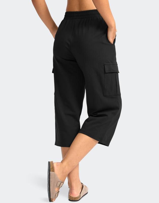 Women’s Capri Pants with 4 Pockets Soft Cotton Stretch Cropped Pants Loose Cargo Capris for Women Yoga Casual(Black)