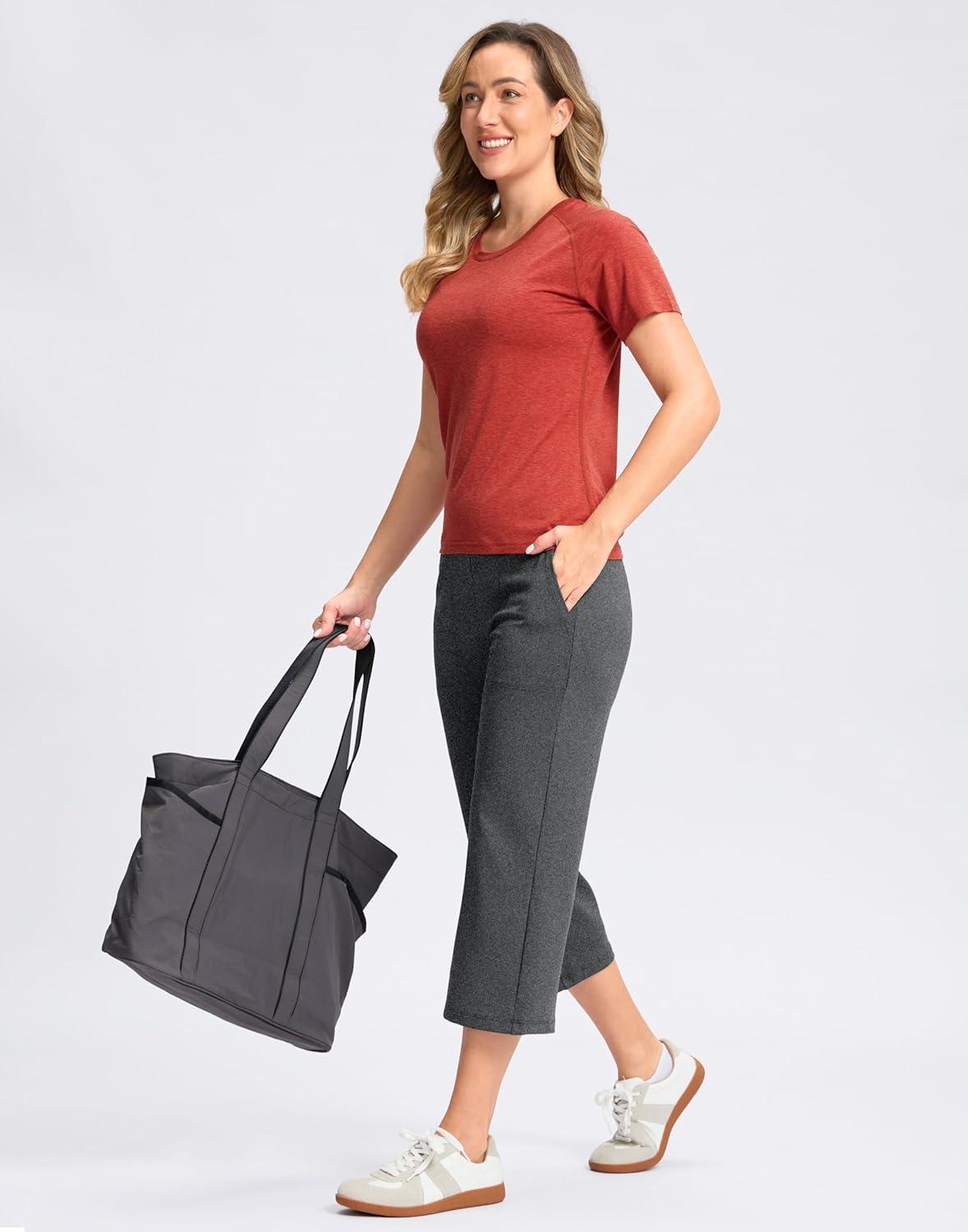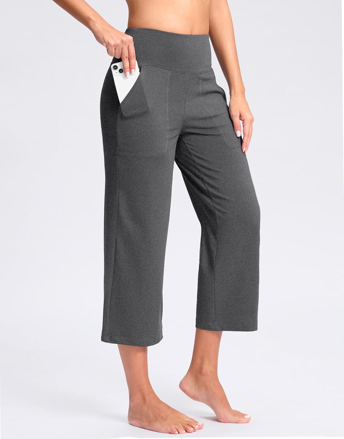 Women’s Capri Pants with Pockets High Waist Yoga Pants Wide Leg Workout Crop Summer Pants for Casual, Travel, Exercise(Charcoal)