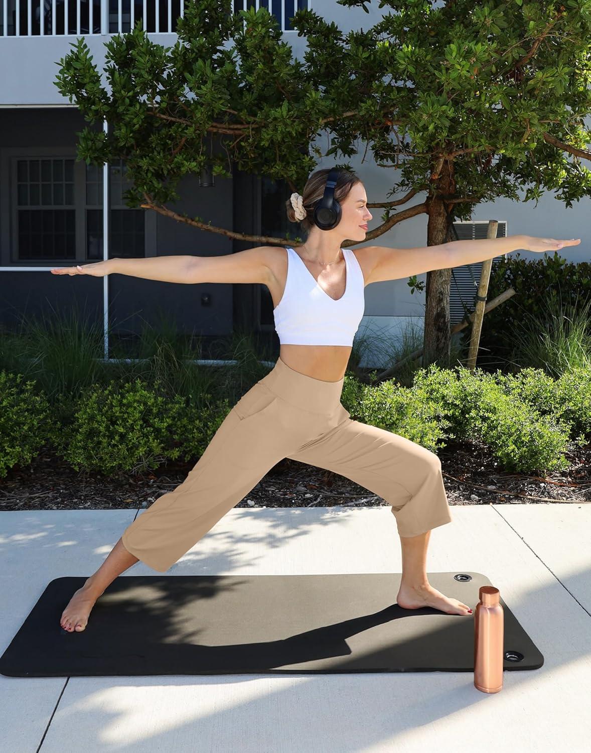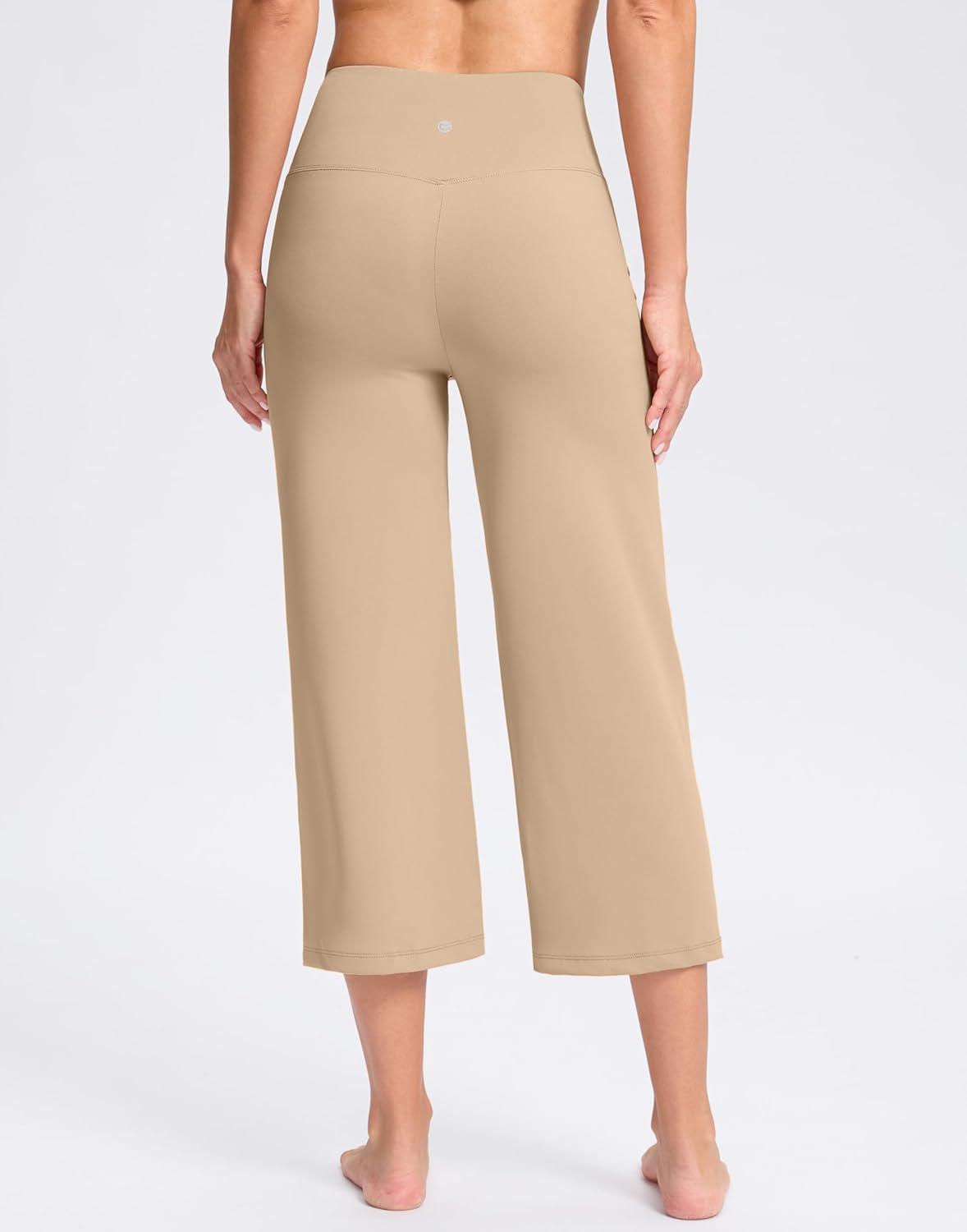 Women's Capri Pants with Pockets High Waist Yoga Pants Wide Leg Workout Crop Summer Pants for Casual, Travel, Exercise(Khaki)