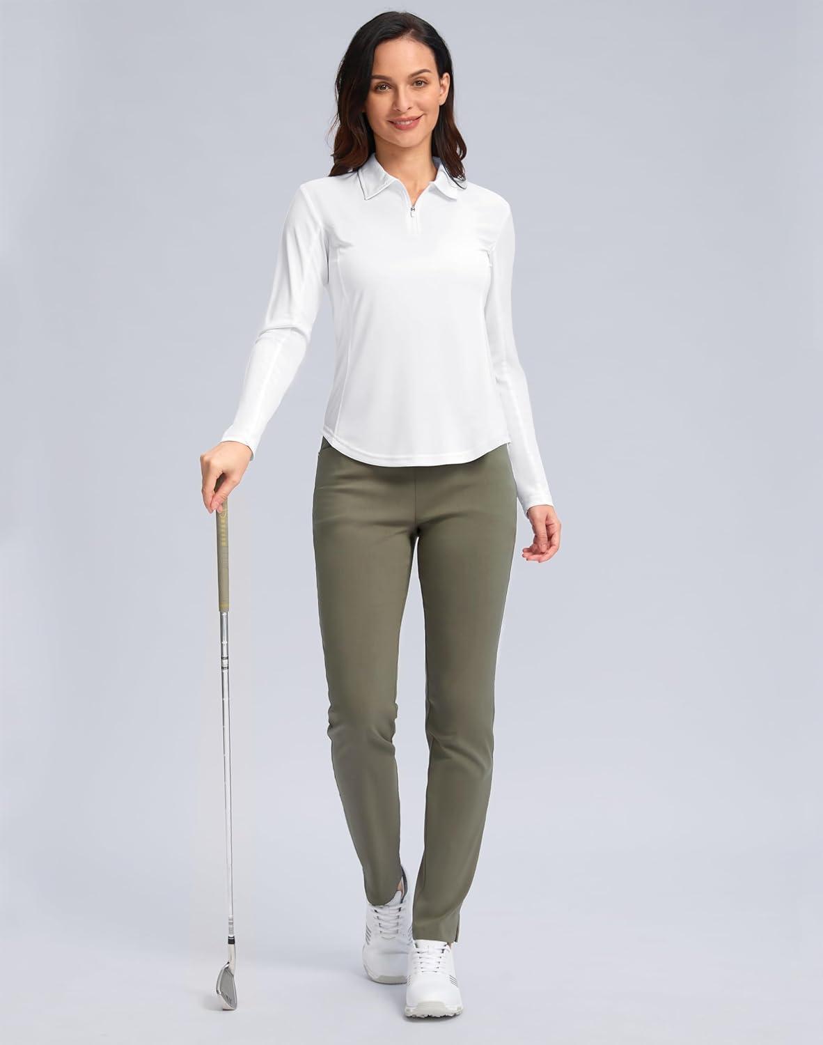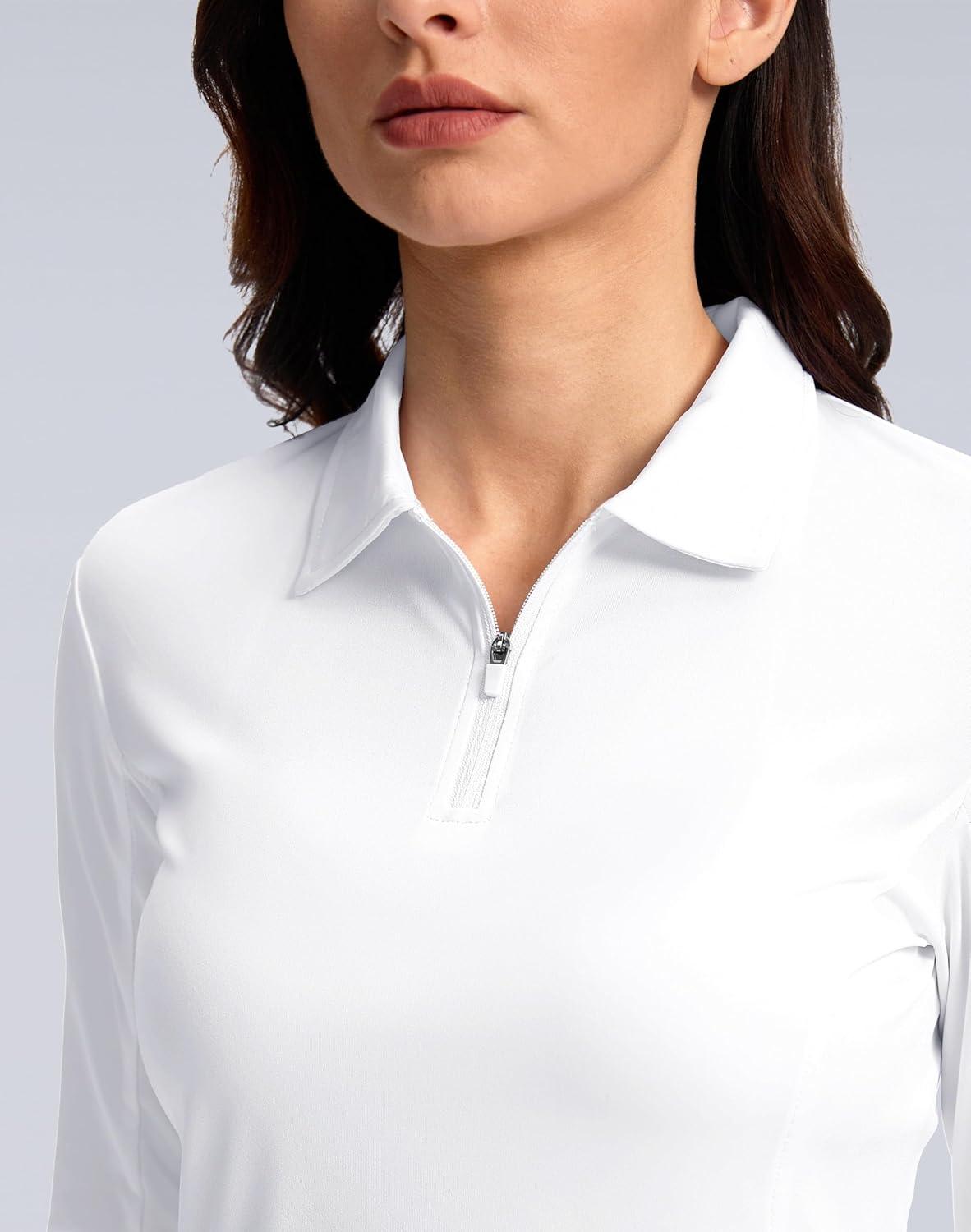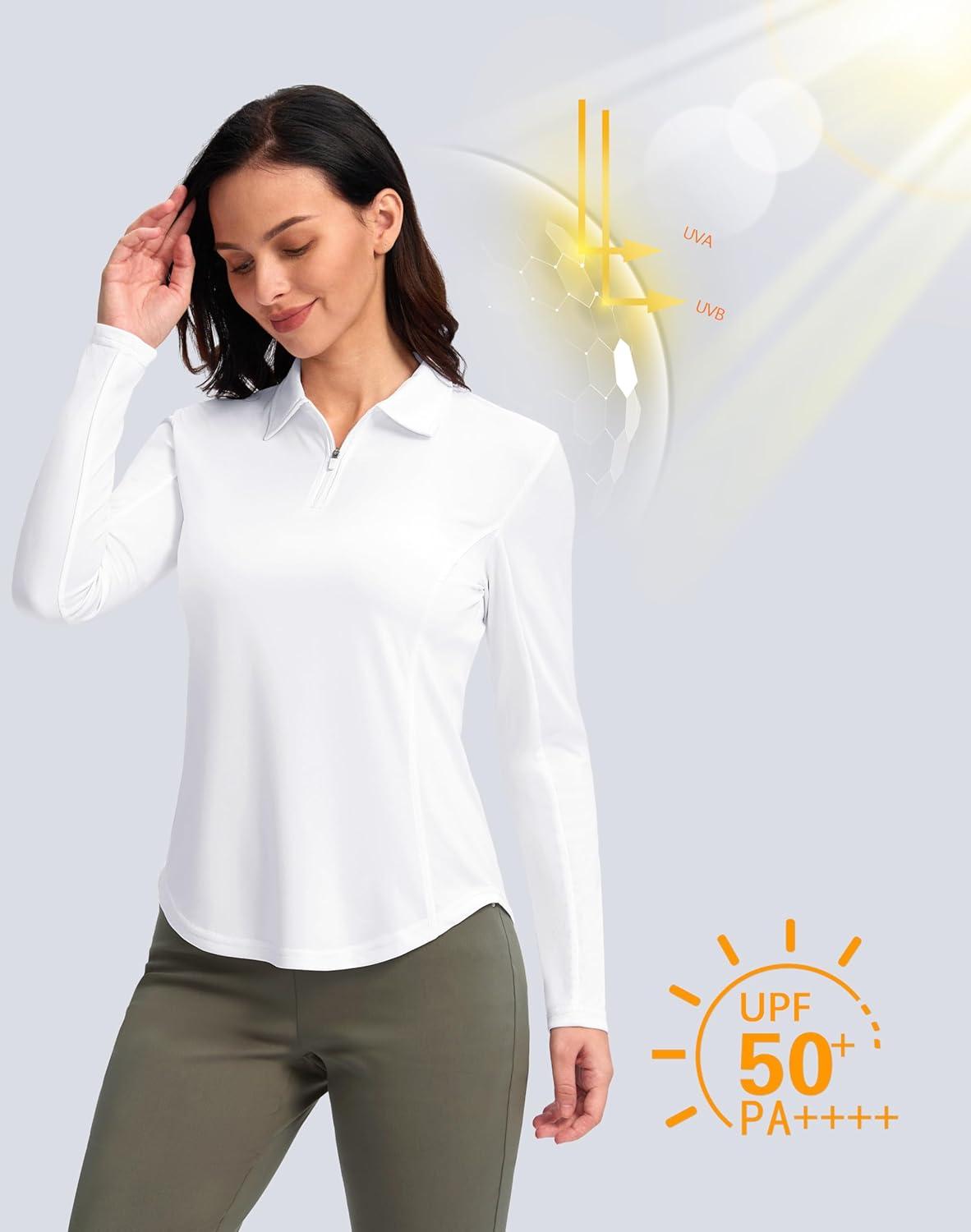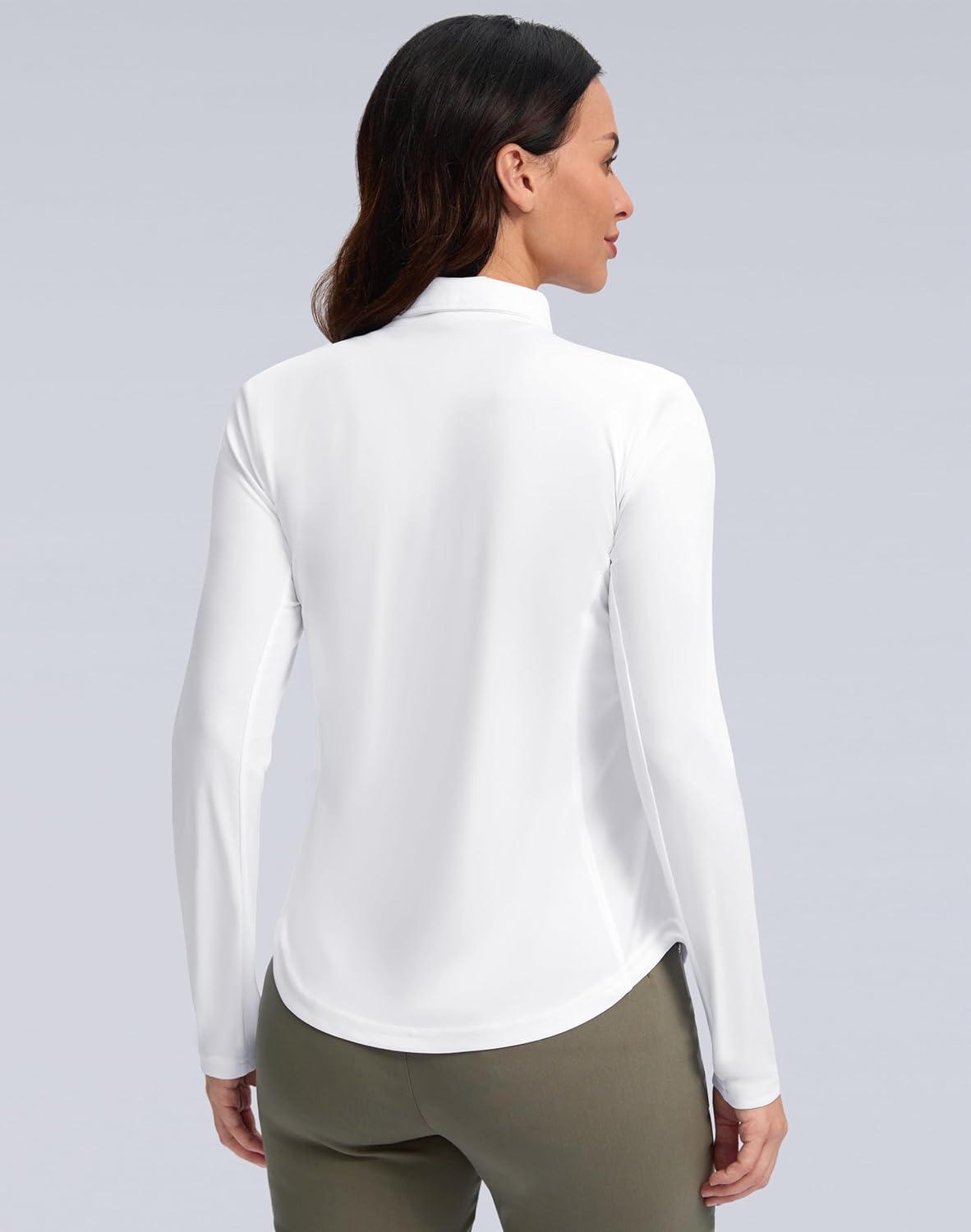 Women's Golf Shirts Lightweight UPF 50+ Long Sleeve Shirts UV Protection Quick Dry Cool Polo Shirts for Women Work Outdoor(White)
