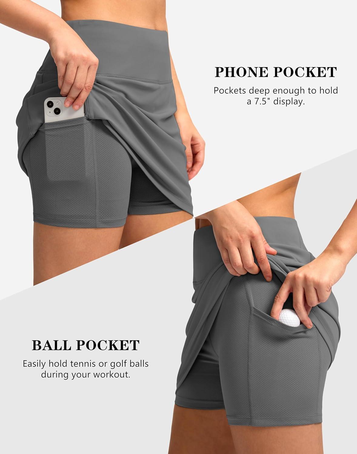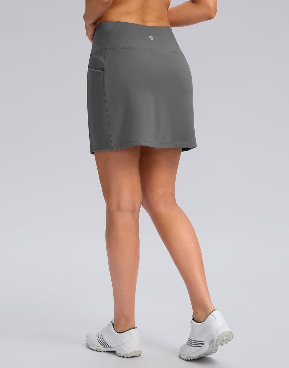 Women’s Golf Skirts Skort 4 Side Pockets High Waisted Stretchy Tennis Skirt with Short Athletic Casual(Iron Grey)