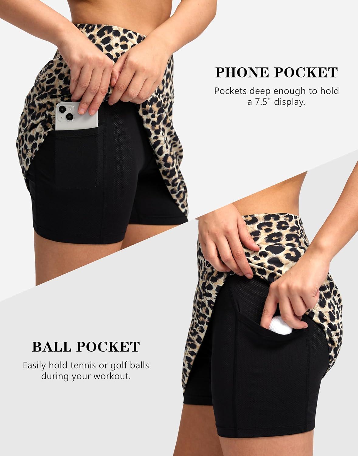 Women’s Golf Skirts Skort 4 Side Pockets High Waisted Stretchy Tennis Skirt with Short Athletic Casual(Leopard)