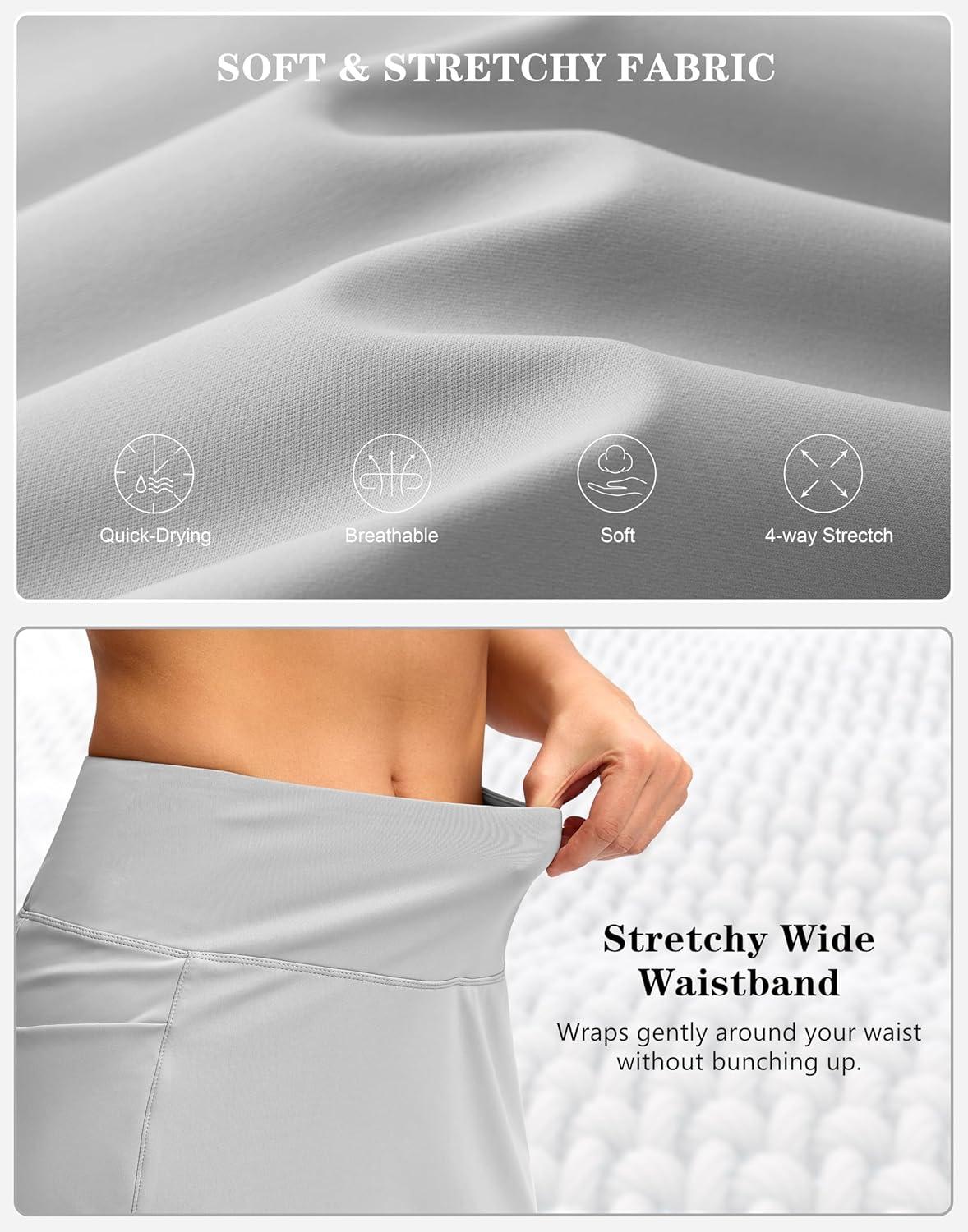 Women’s Golf Skirts Skort 4 Side Pockets High Waisted Stretchy Tennis Skirt with Short Athletic Casual(Silver Grey)