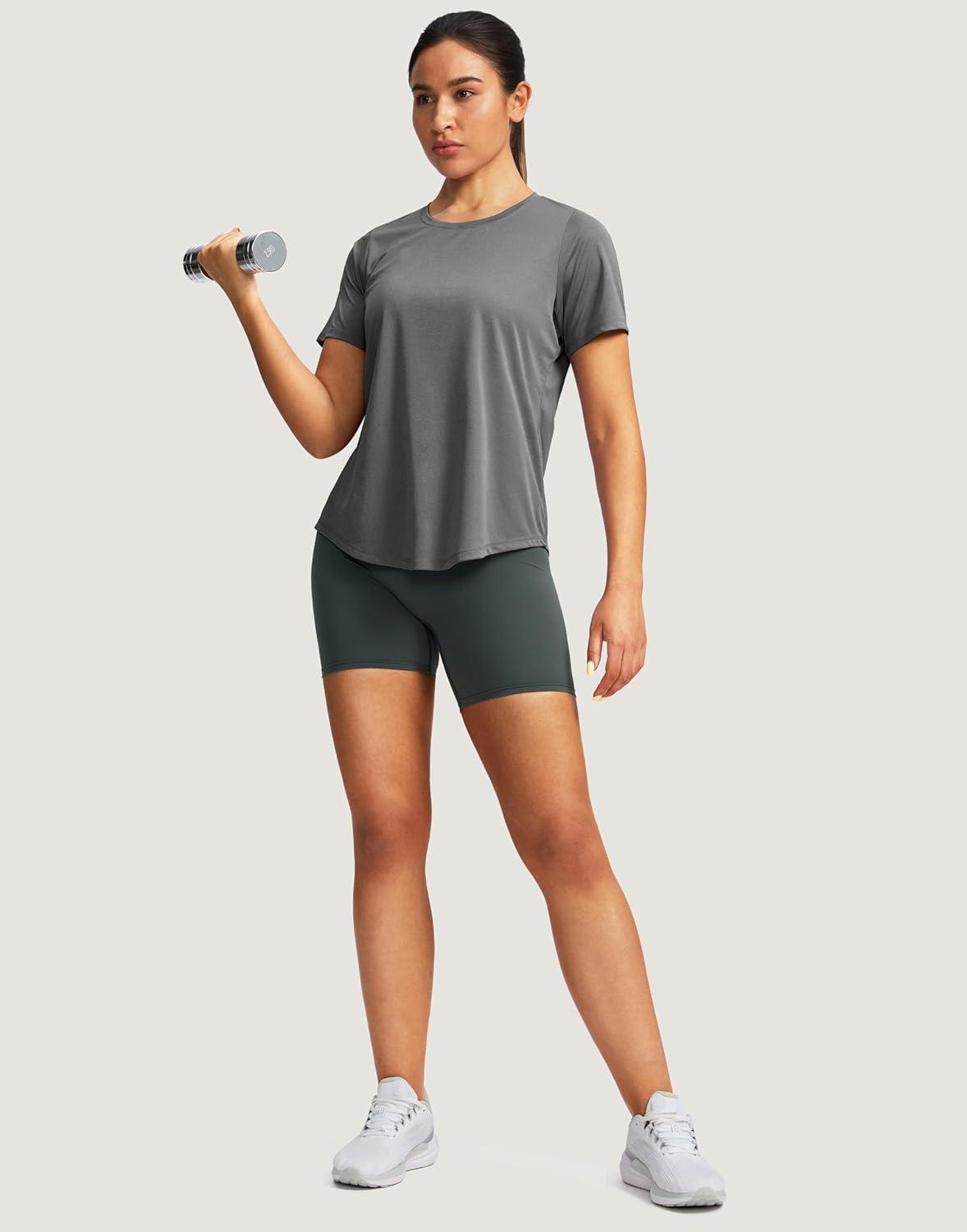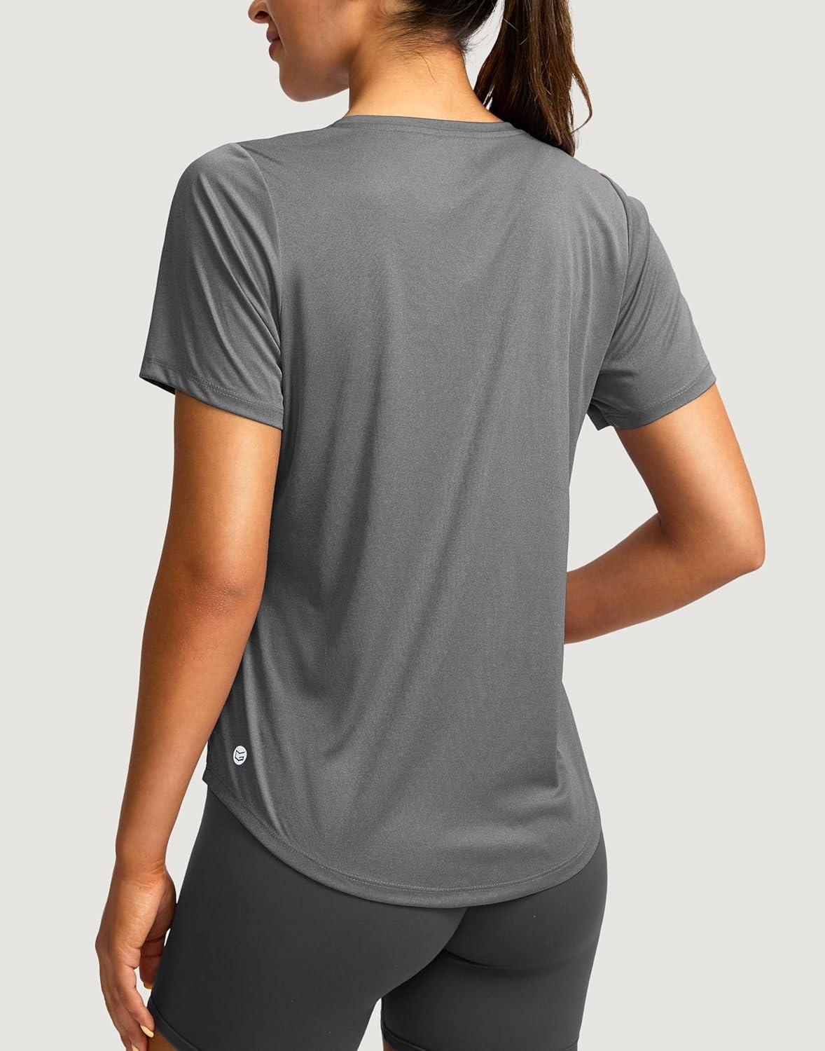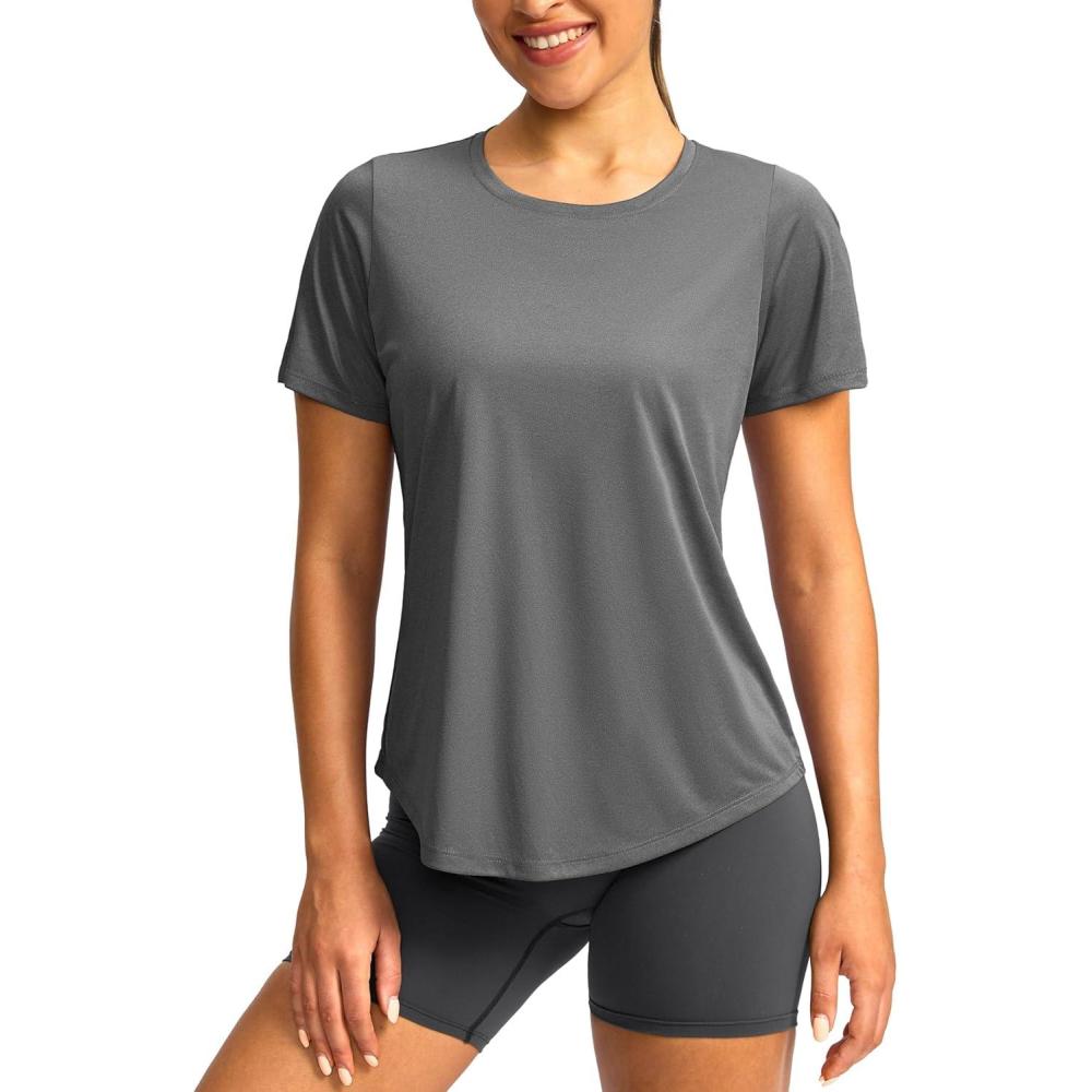 Women's Short Sleeve Workout Shirts Breathable UPF 50+ Sun Protection T-Shirts Quick Dry Gym Running Hiking Tops(Heather Dark Grey)