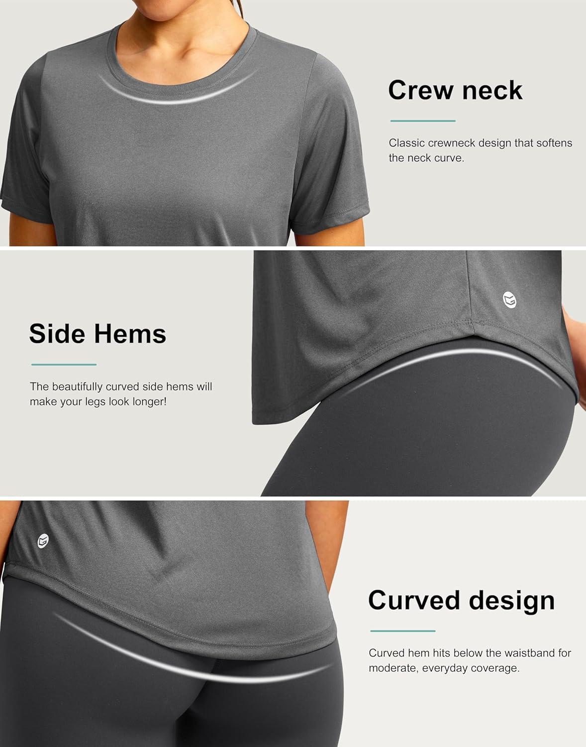 Women’s Short Sleeve Workout Shirts Breathable UPF 50+ Sun Protection T-Shirts Quick Dry Gym Running Hiking Tops(Heather Dark Grey)
