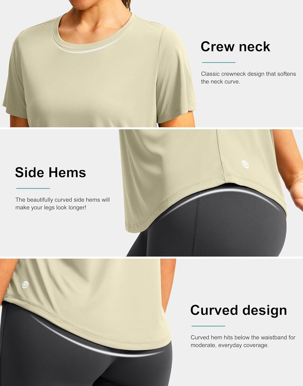 Women’s Short Sleeve Workout Shirts Breathable UPF 50+ Sun Protection T-Shirts Quick Dry Gym Running Hiking Tops(Oat Milk)