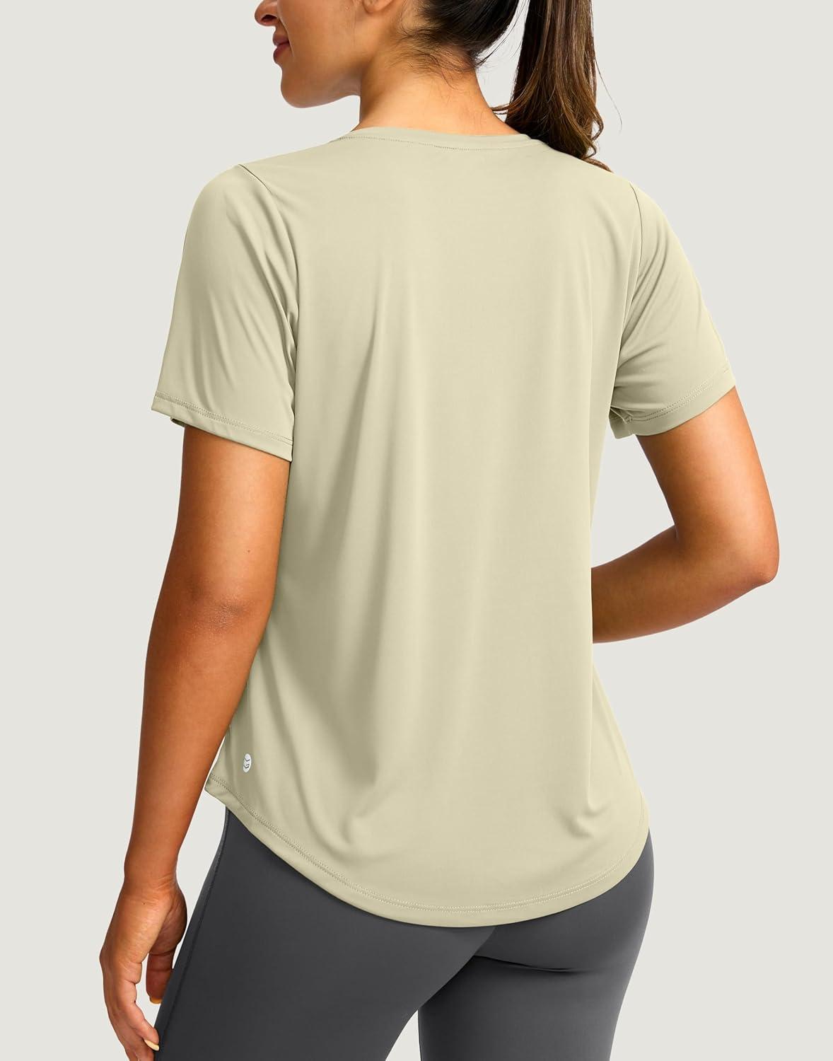 Women's Short Sleeve Workout Shirts Breathable UPF 50+ Sun Protection T-Shirts Quick Dry Gym Running Hiking Tops(Oat Milk)