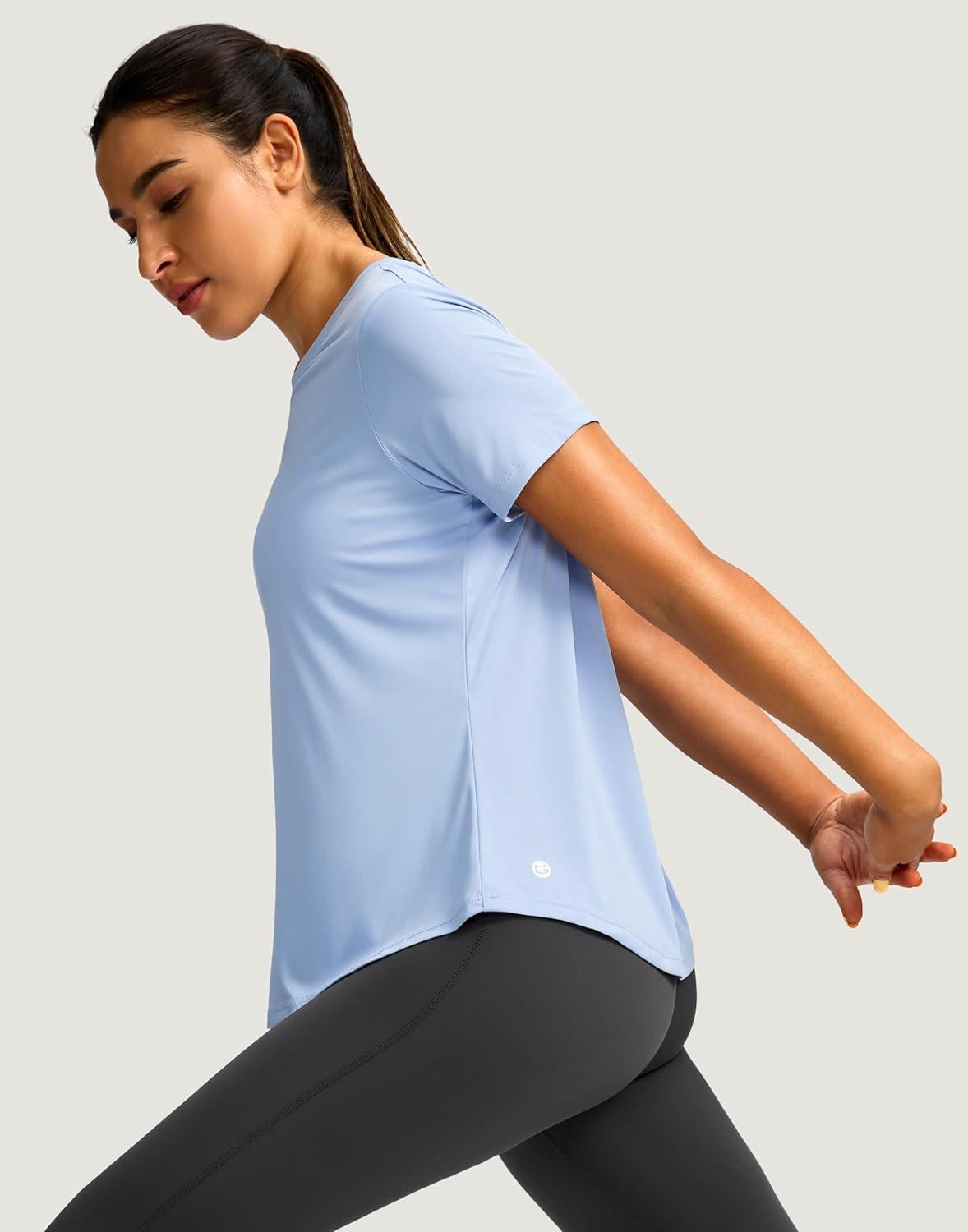 Women's Short Sleeve Workout Shirts Breathable UPF 50+ Sun Protection T-Shirts Quick Dry Gym Running Hiking Tops(Snow Blue)