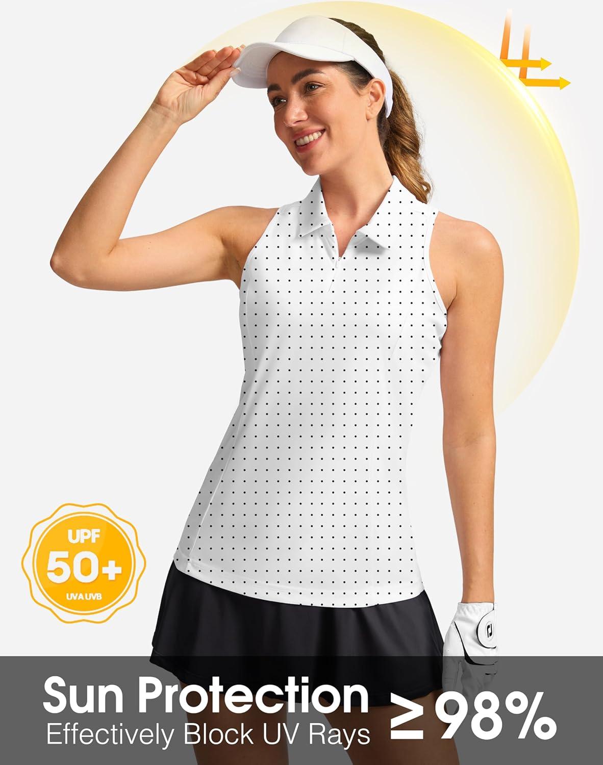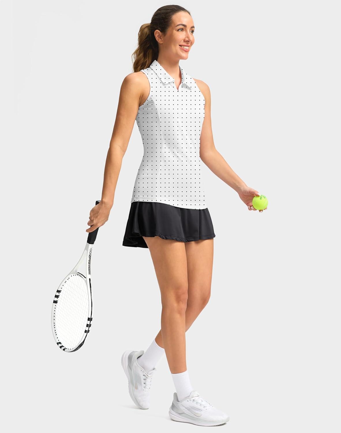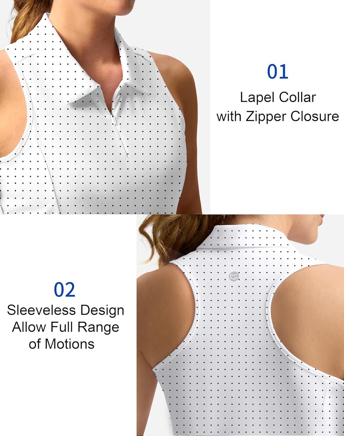 Women's Sleeveless Golf Shirt Zip Up Quick Dry Collared Tank Tops Racerback Tennis Athletic Polo Shirts for Women(Black Dot)