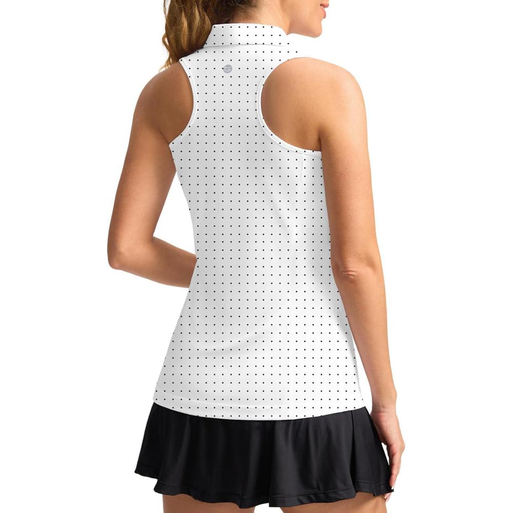 Women’s Sleeveless Golf Shirt Zip Up Quick Dry Collared Tank Tops Racerback Tennis Athletic Polo Shirts for Women(Black Dot)
