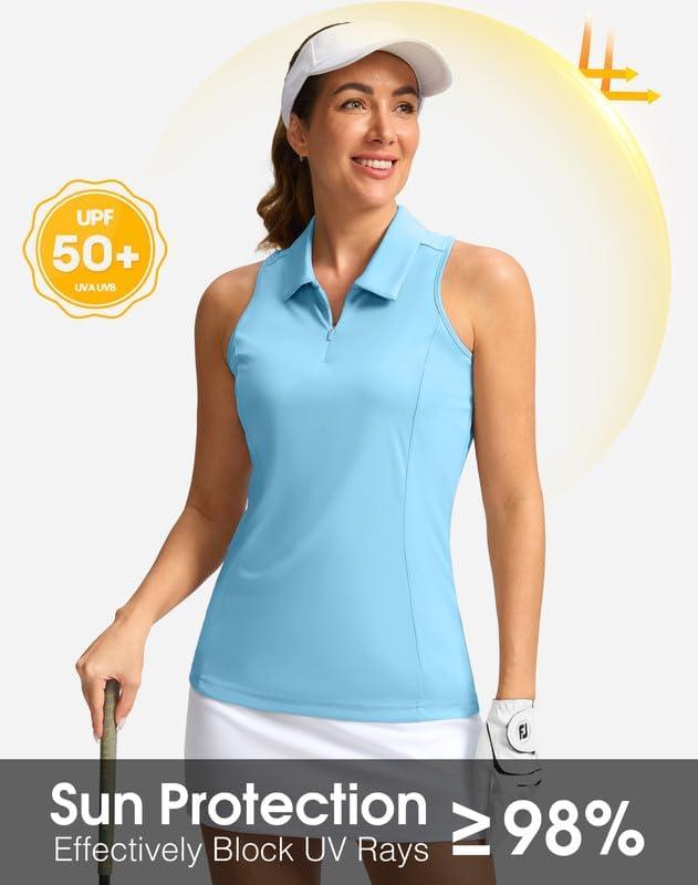 Women's Sleeveless Golf Shirt Zip Up Quick Dry Collared Tank Tops Racerback Tennis Athletic Polo Shirts for Women(Light Blue)