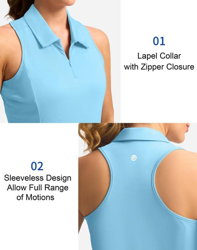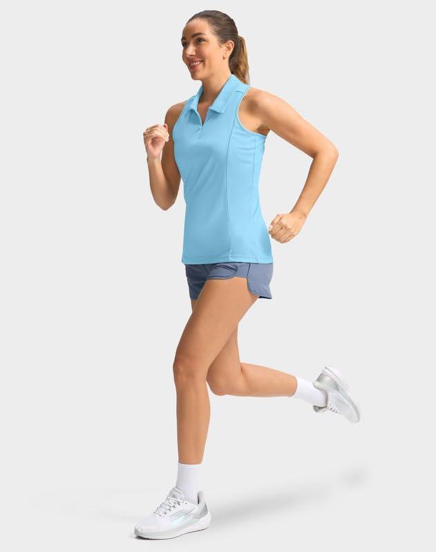 Women’s Sleeveless Golf Shirt Zip Up Quick Dry Collared Tank Tops Racerback Tennis Athletic Polo Shirts for Women(Light Blue)