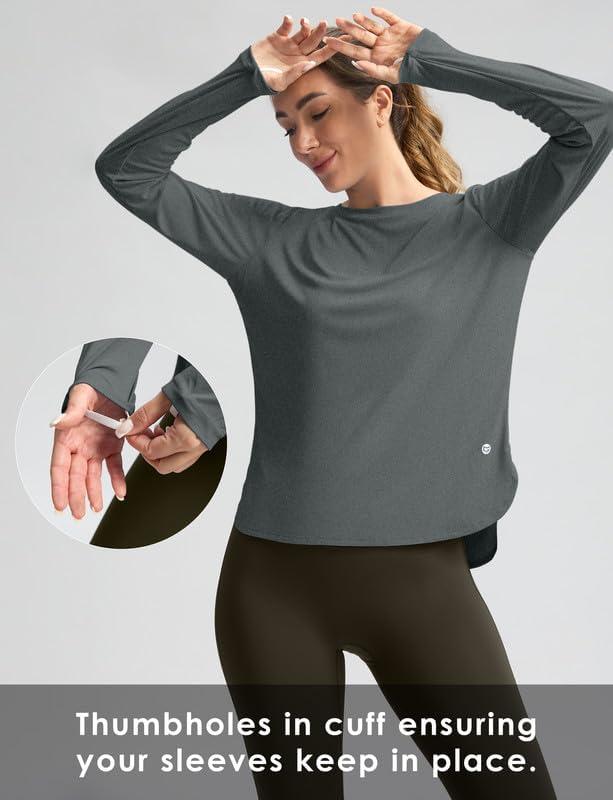Women's Sun Shirts UPF 50+ Long Sleeve UV Protection Shirt Lightweight Quick Dry Workout Hiking Tops for Women(Heather Grey)