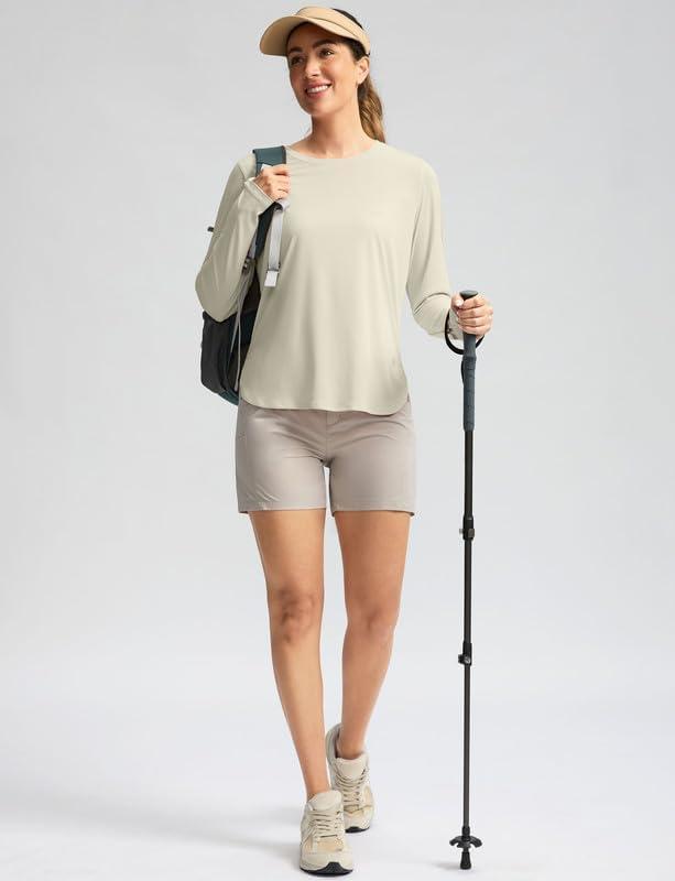 Women's Sun Shirts UPF 50+ Long Sleeve UV Protection Shirt Lightweight Quick Dry Workout Hiking Tops for Women(Oatmeal)