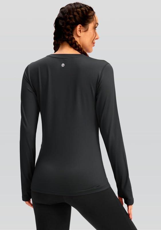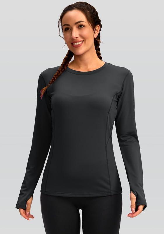 Women’s Thermal Fleece Tops Long Sleeve Workout Shirts Running Athletic Base Layer with Thumb Holes Zipper Pocket(Dark Gray)