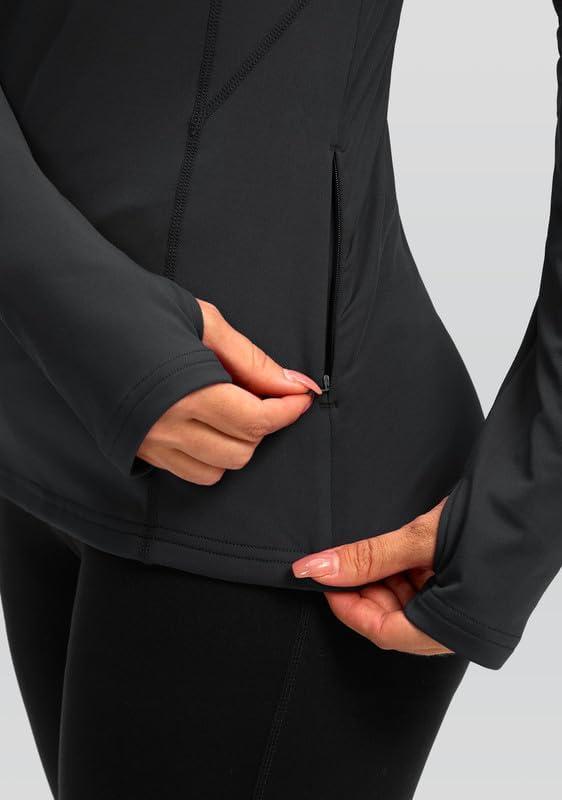 Women's Thermal Fleece Tops Long Sleeve Workout Shirts Running Athletic Base Layer with Thumb Holes Zipper Pocket(Dark Gray)