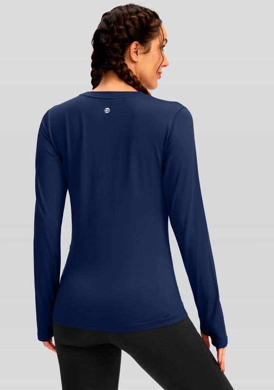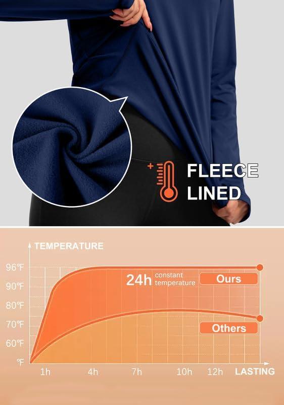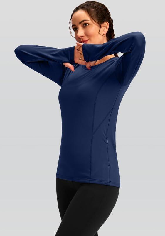 Women’s Thermal Fleece Tops Long Sleeve Workout Shirts Running Athletic Base Layer with Thumb Holes Zipper Pocket(Navy)