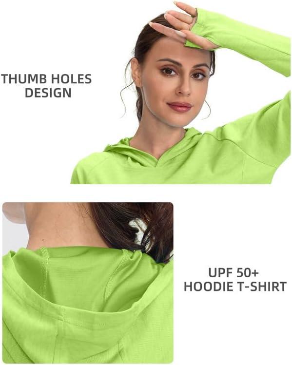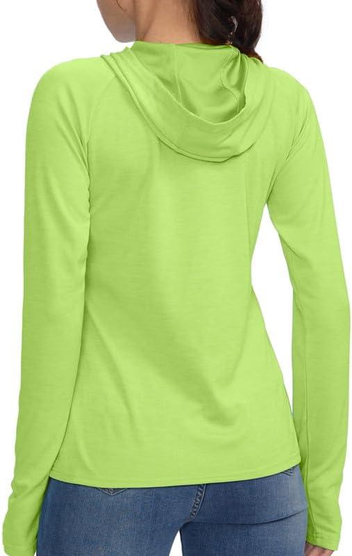 Women’s UPF 50+ Sun Protection Shirt Long Sleeve Lightweight Hoodie UV Shirts for Women Hiking Fishing Outdoor(Fluorescent Green)