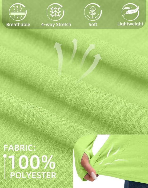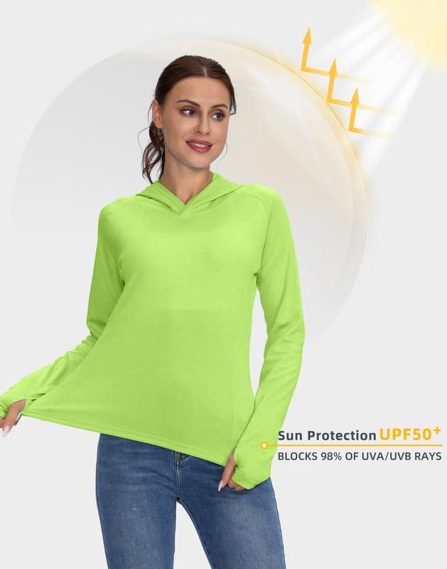 Women's UPF 50+ Sun Protection Shirt Long Sleeve Lightweight Hoodie UV Shirts for Women Hiking Fishing Outdoor(Fluorescent Green)