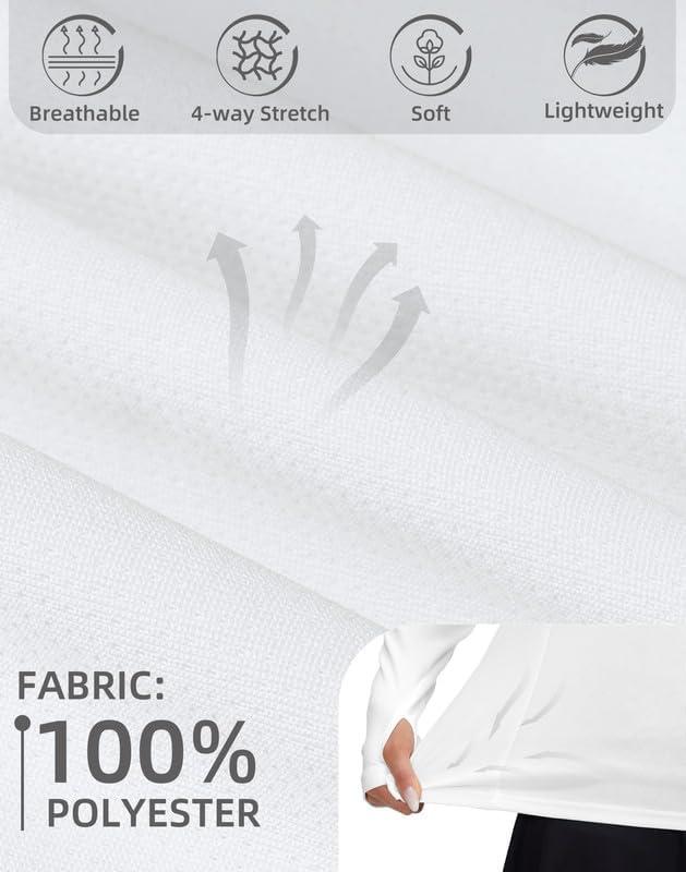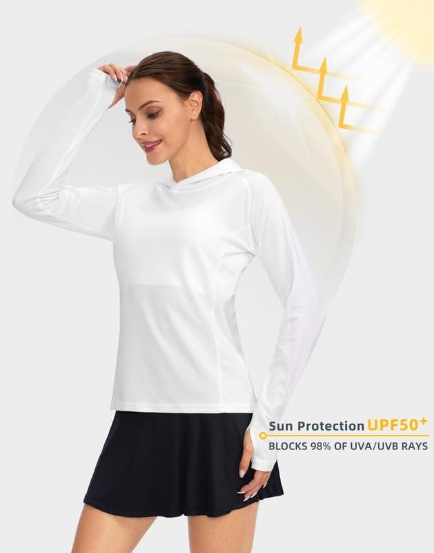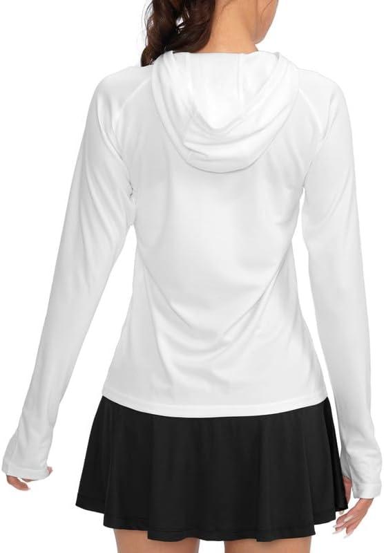 Women's UPF 50+ Sun Protection Shirt Long Sleeve Lightweight Hoodie UV Shirts for Women Hiking Fishing Outdoor(White)