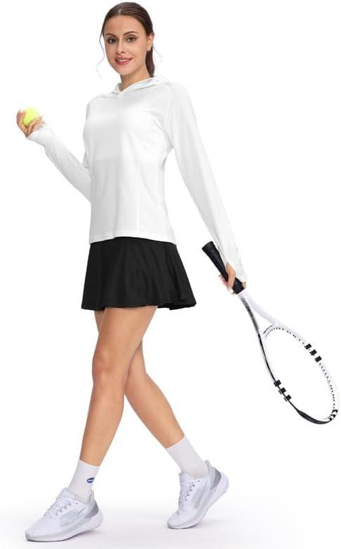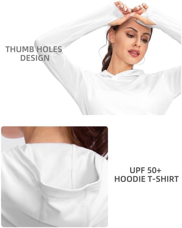 Women’s UPF 50+ Sun Protection Shirt Long Sleeve Lightweight Hoodie UV Shirts for Women Hiking Fishing Outdoor(White)