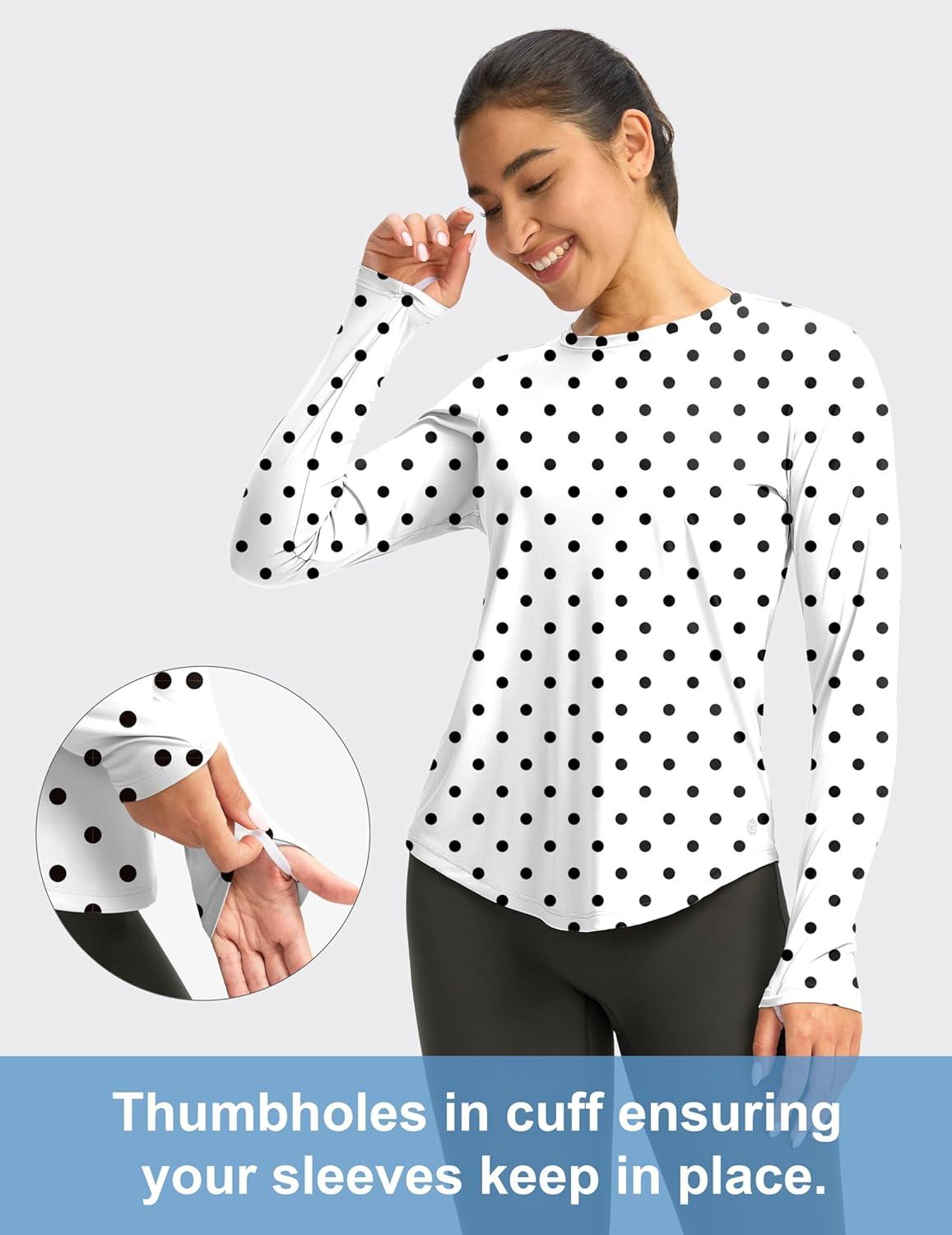 Women’s UPF 50+ Sun Shirt Long Sleeve UV Shirts Rash Guard Lightweight Quick Dry Workout Hiking Tops for Women(Black Dot)