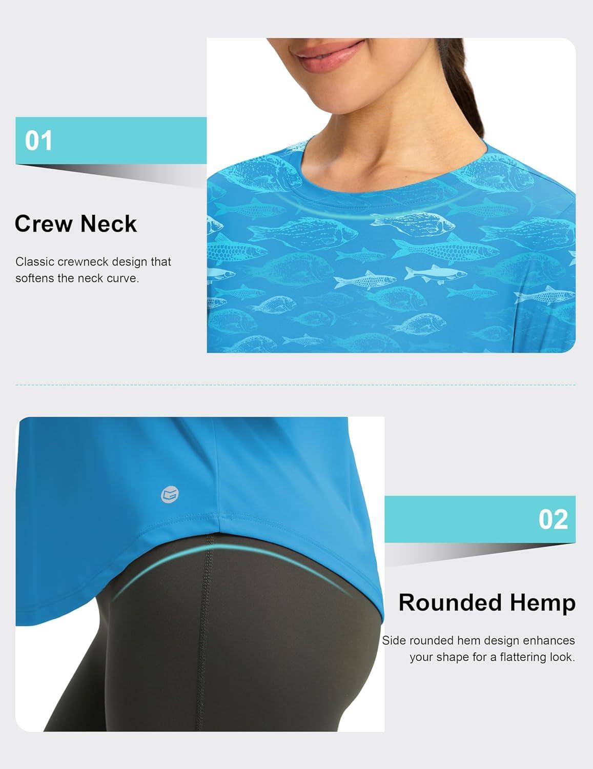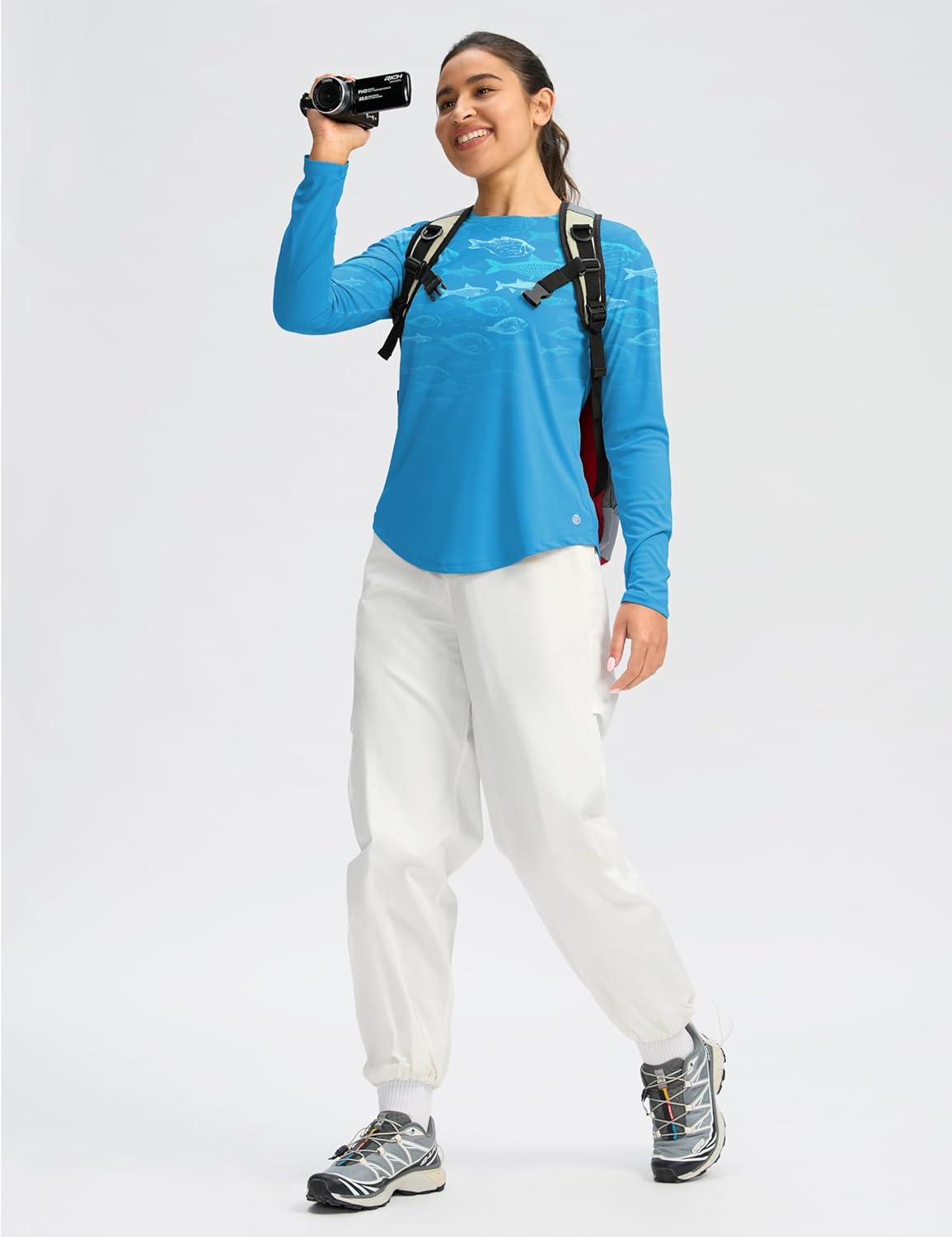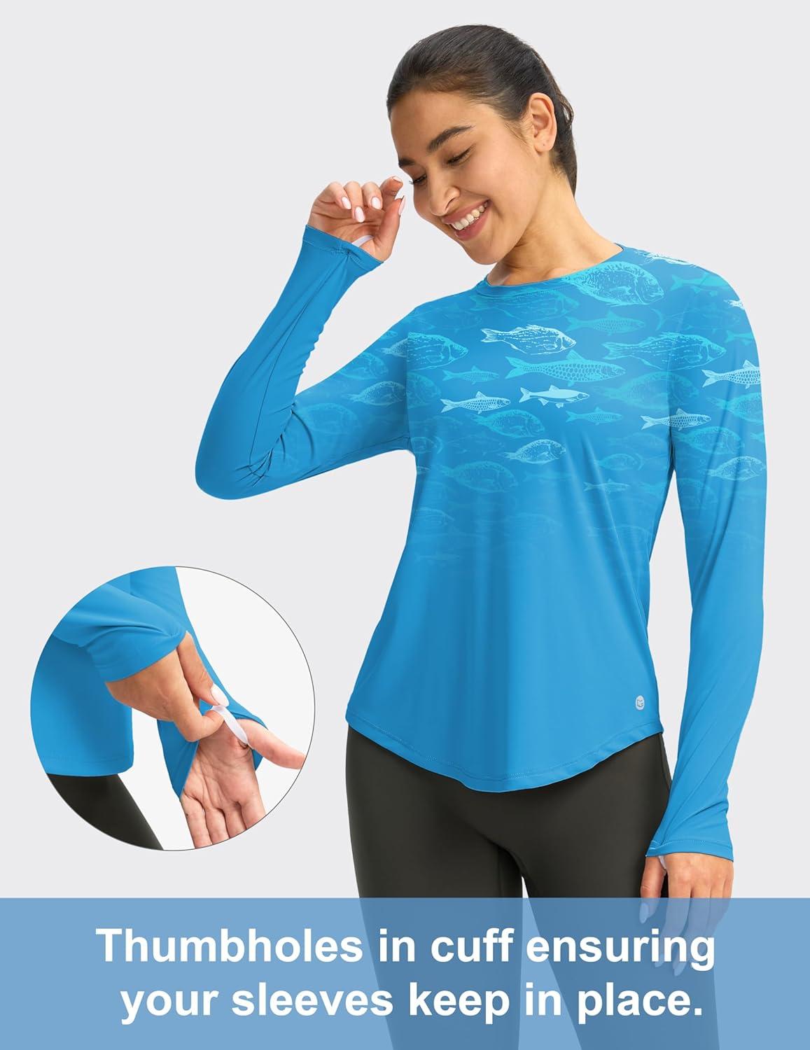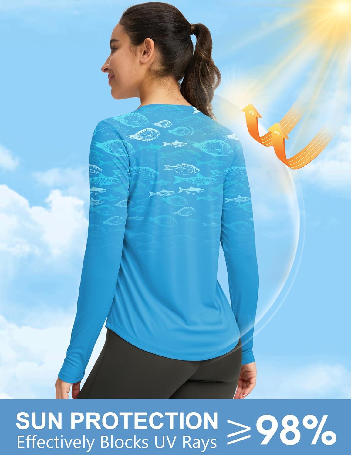 Women’s UPF 50+ Sun Shirt Long Sleeve UV Shirts Rash Guard Lightweight Quick Dry Workout Hiking Tops for Women(Blue Fish)