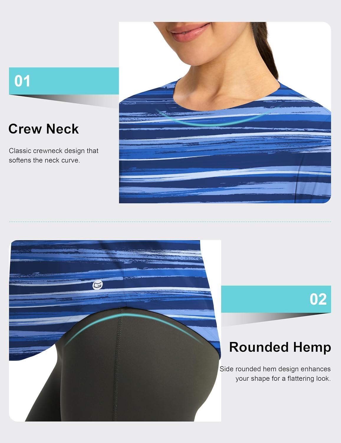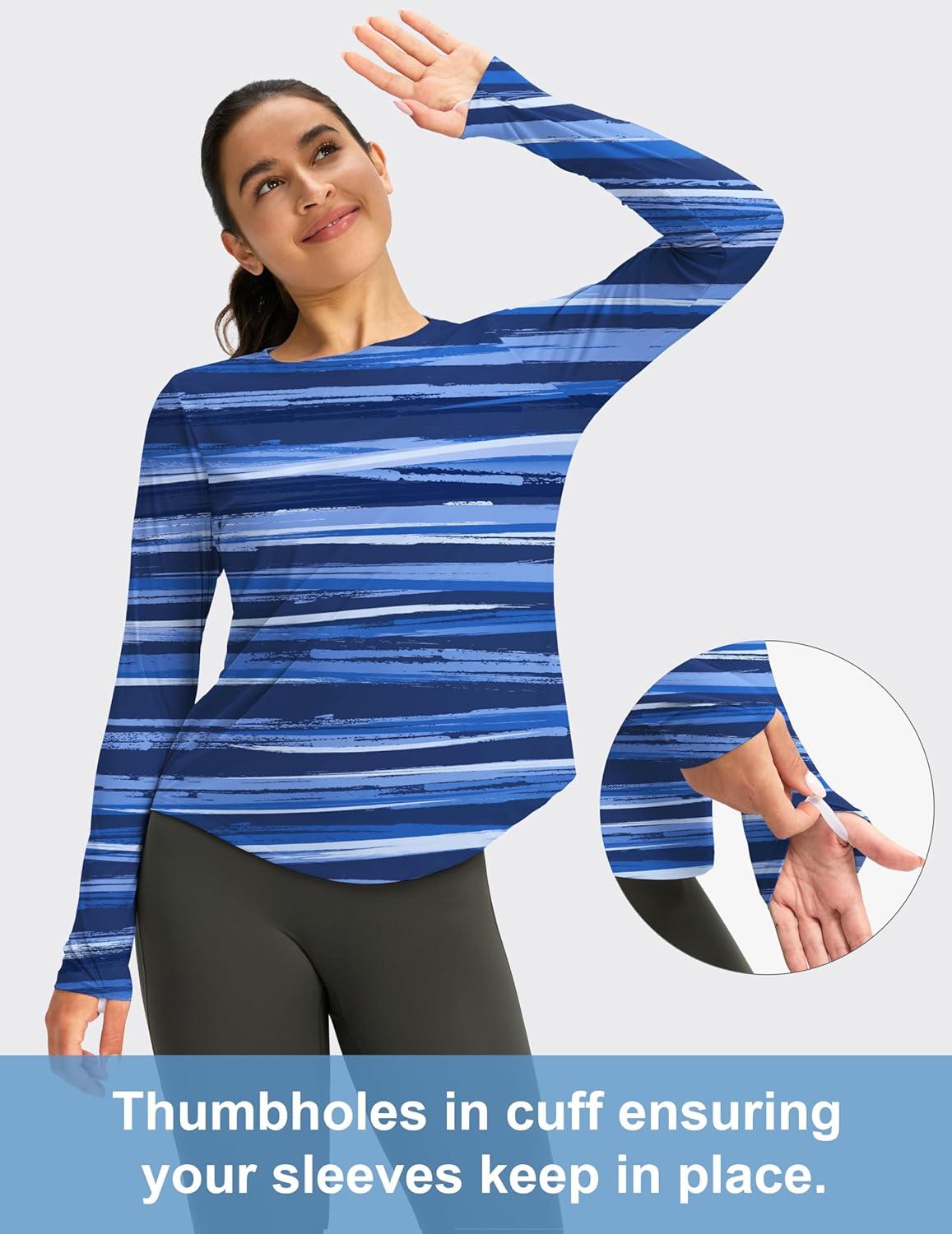 Women's UPF 50+ Sun Shirt Long Sleeve UV Shirts Rash Guard Lightweight Quick Dry Workout Hiking Tops for Women(Ripple Blue)