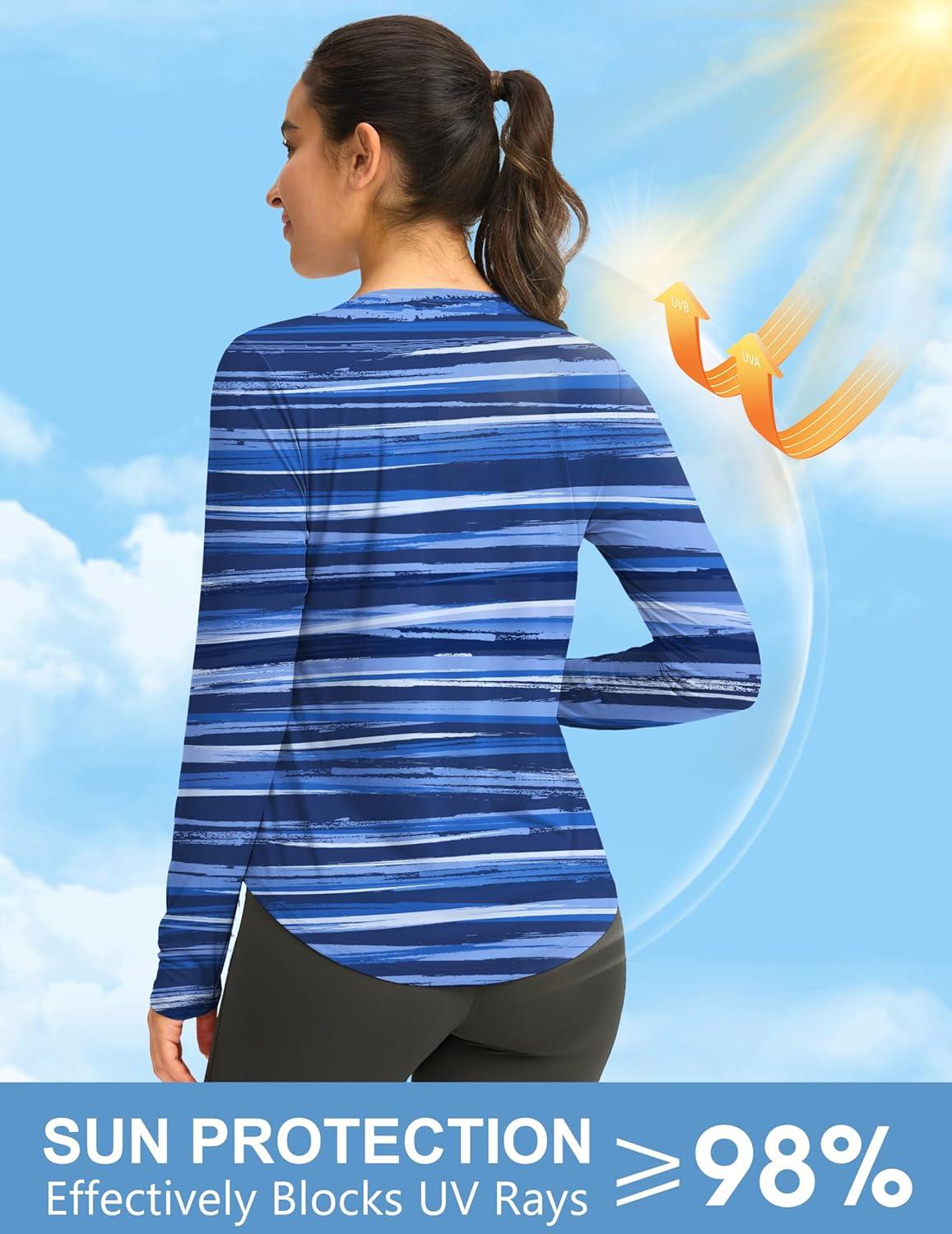 Women’s UPF 50+ Sun Shirt Long Sleeve UV Shirts Rash Guard Lightweight Quick Dry Workout Hiking Tops for Women(Ripple Blue)