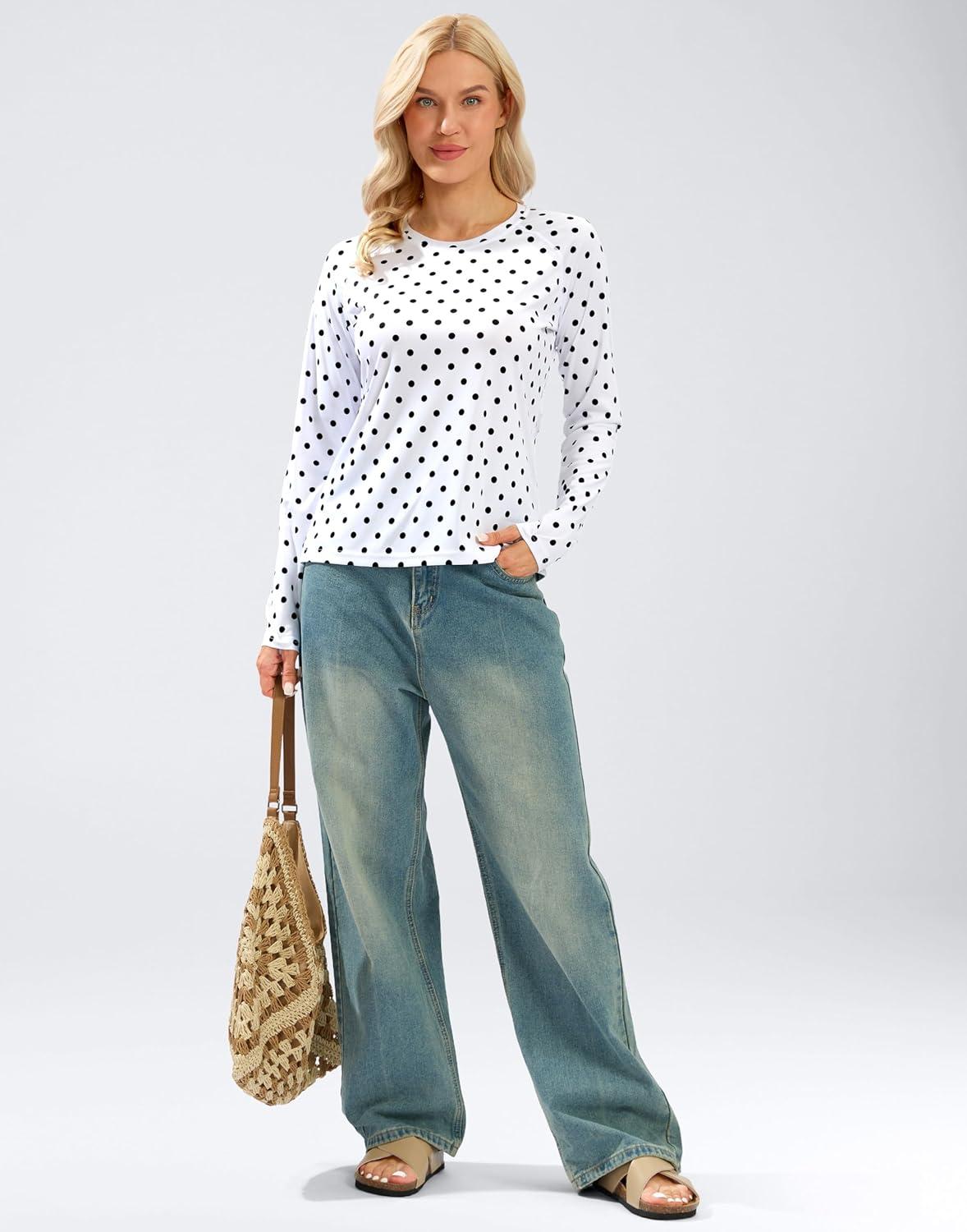 Women’s UPF 50+ Sun Shirts Long Sleeve UV Protection Rash Guard Lightweight Quick Dry Workout Hiking Tops for Women(Dot Geometry)