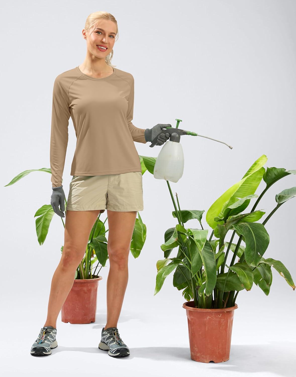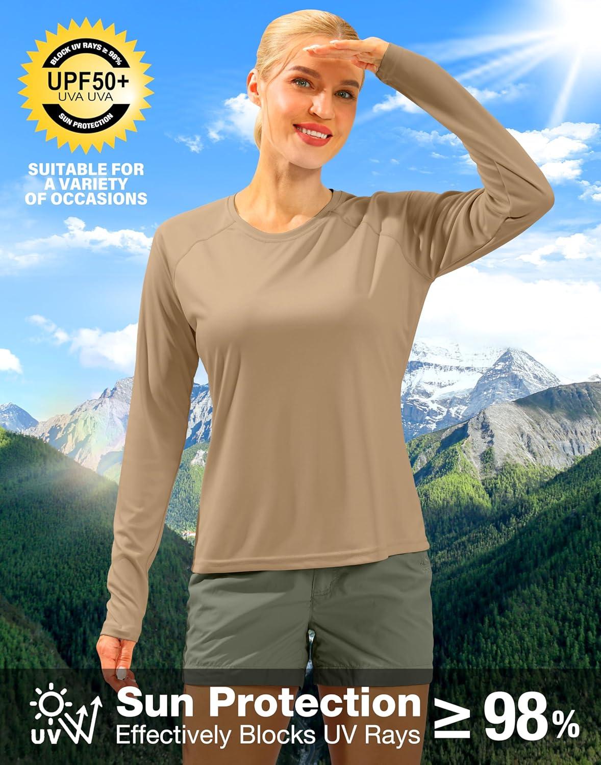 Women’s UPF 50+ Sun Shirts Long Sleeve UV Protection Rash Guard Lightweight Quick Dry Workout Hiking Tops for Women(Khaki)