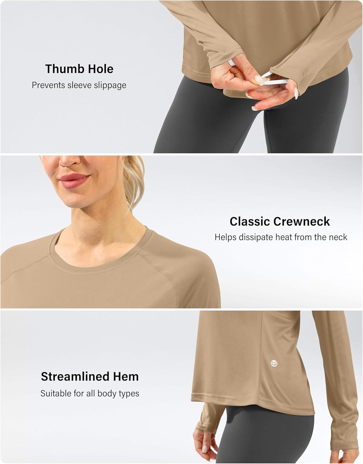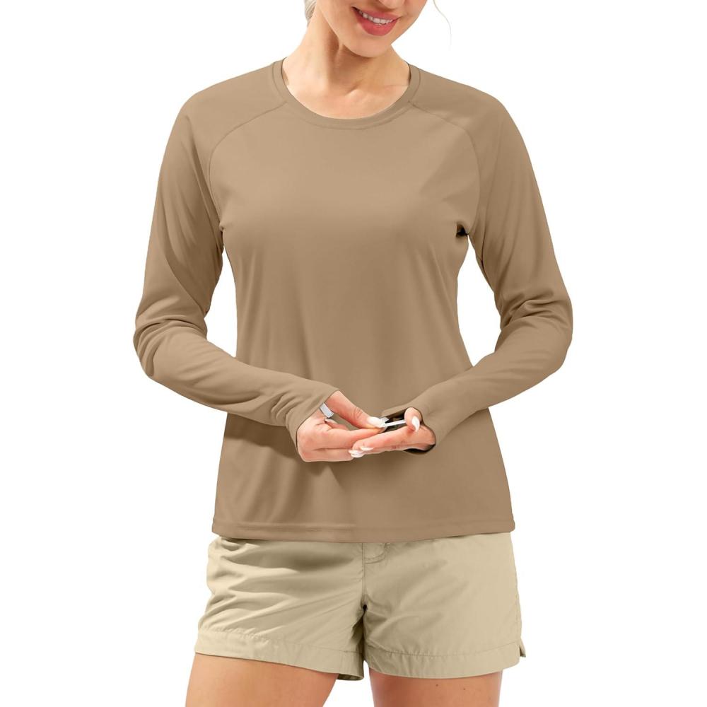 Women's UPF 50+ Sun Shirts Long Sleeve UV Protection Rash Guard Lightweight Quick Dry Workout Hiking Tops for Women(Khaki)