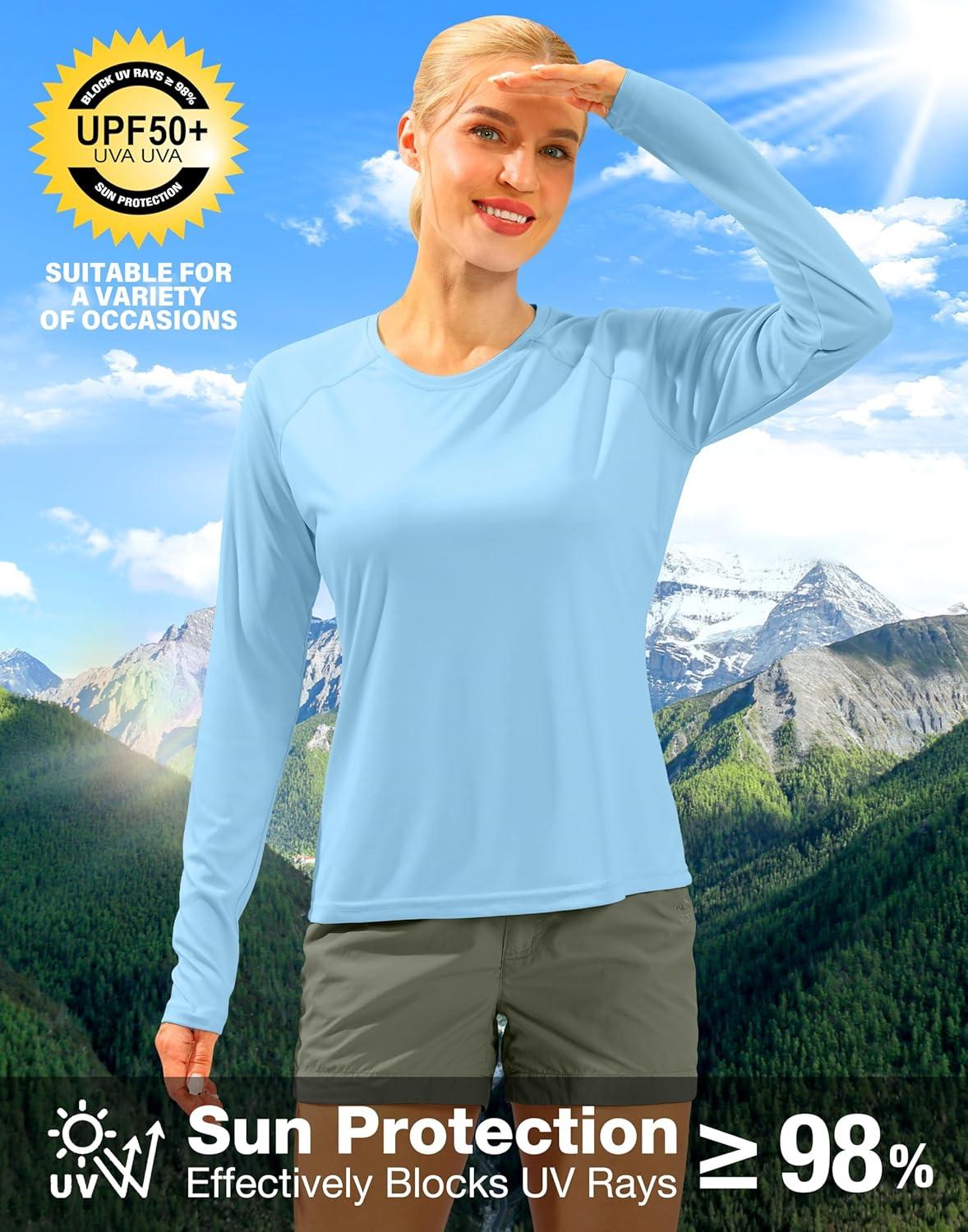Women's UPF 50+ Sun Shirts Long Sleeve UV Protection Rash Guard Lightweight Quick Dry Workout Hiking Tops for Women(Light Blue)