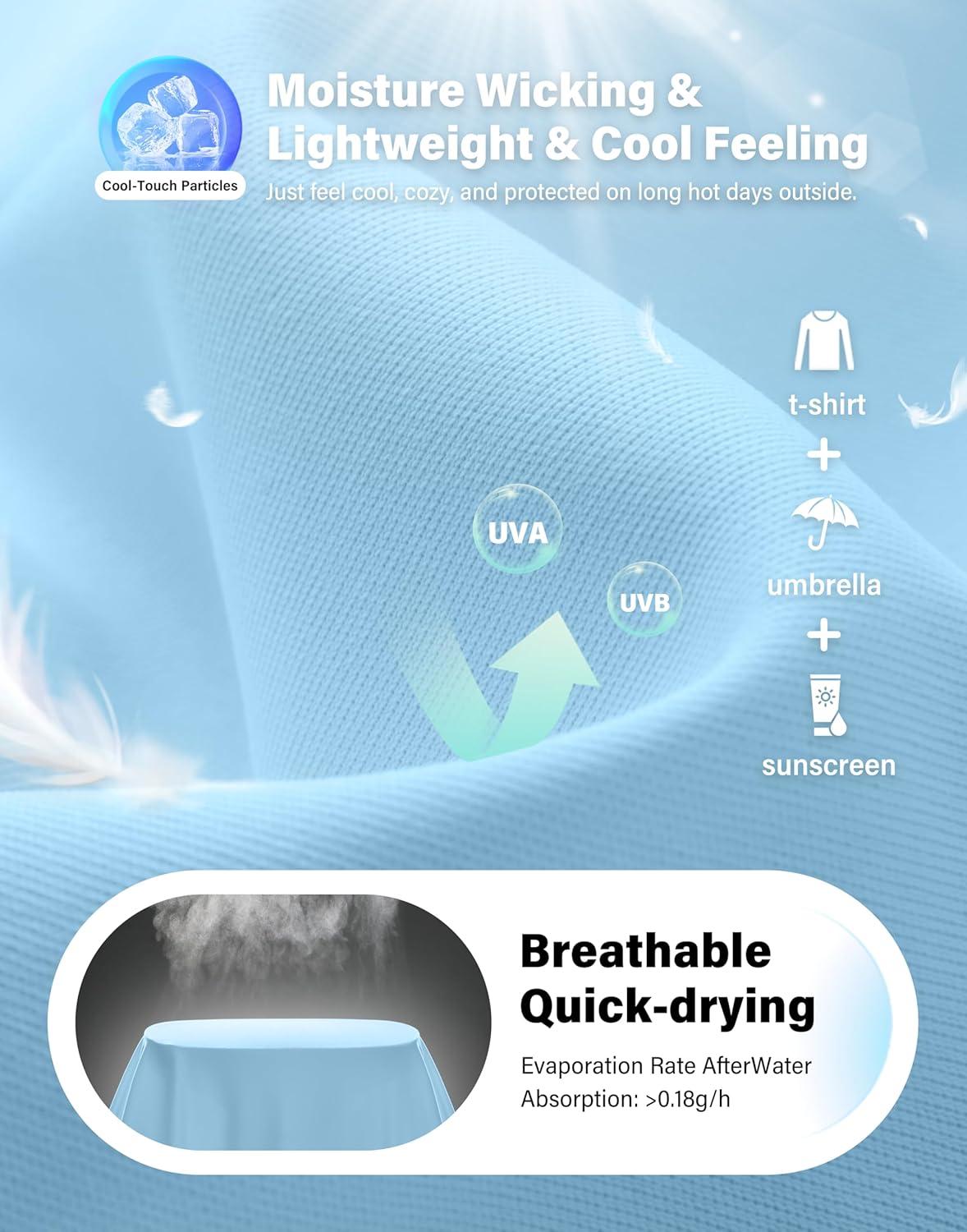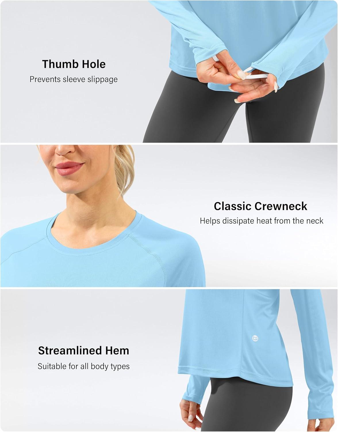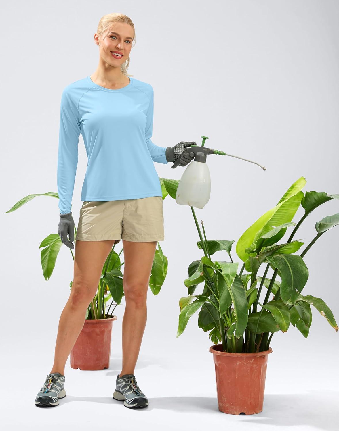 Women’s UPF 50+ Sun Shirts Long Sleeve UV Protection Rash Guard Lightweight Quick Dry Workout Hiking Tops for Women(Light Blue)