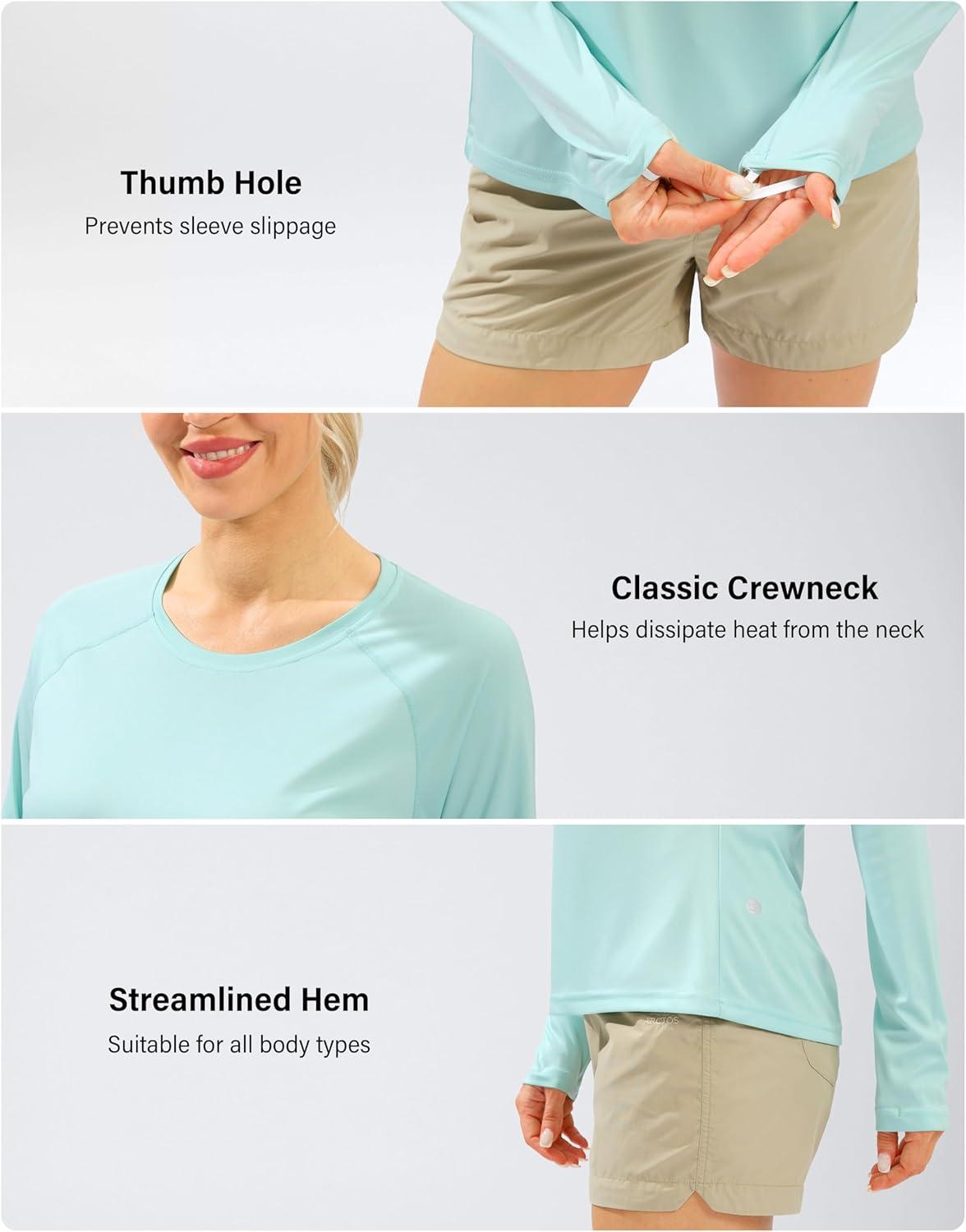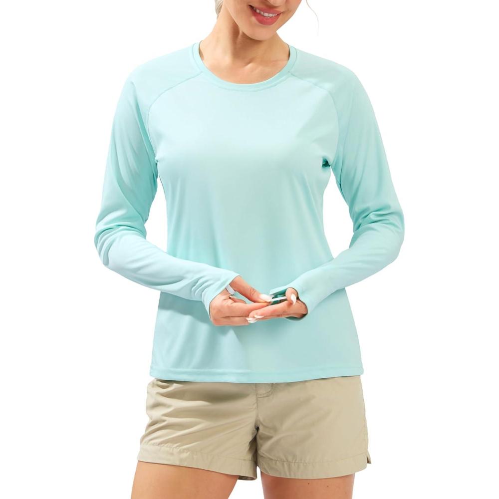 Women’s UPF 50+ Sun Shirts Long Sleeve UV Protection Rash Guard Lightweight Quick Dry Workout Hiking Tops for Women(Light Blue)