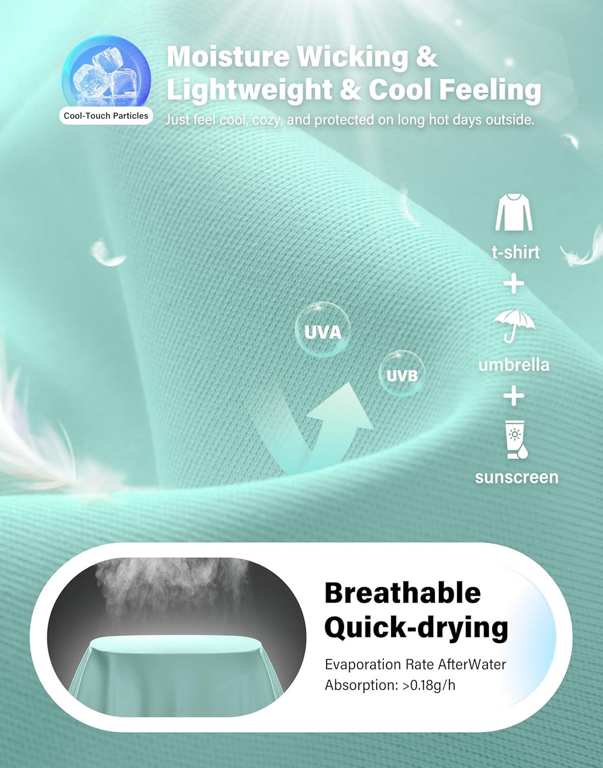 Women's UPF 50+ Sun Shirts Long Sleeve UV Protection Rash Guard Lightweight Quick Dry Workout Hiking Tops for Women(Light Green)