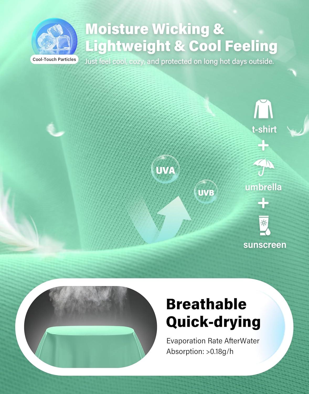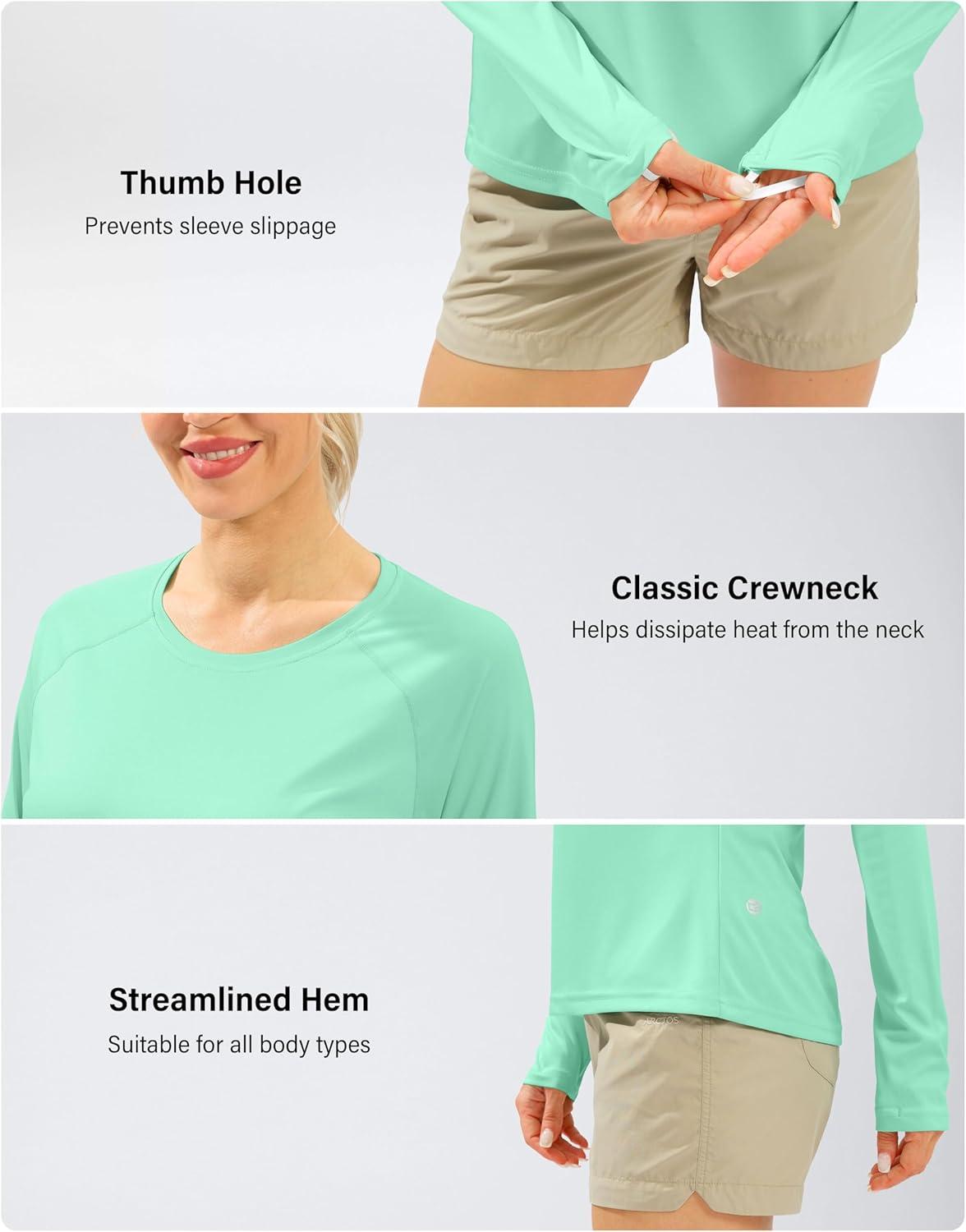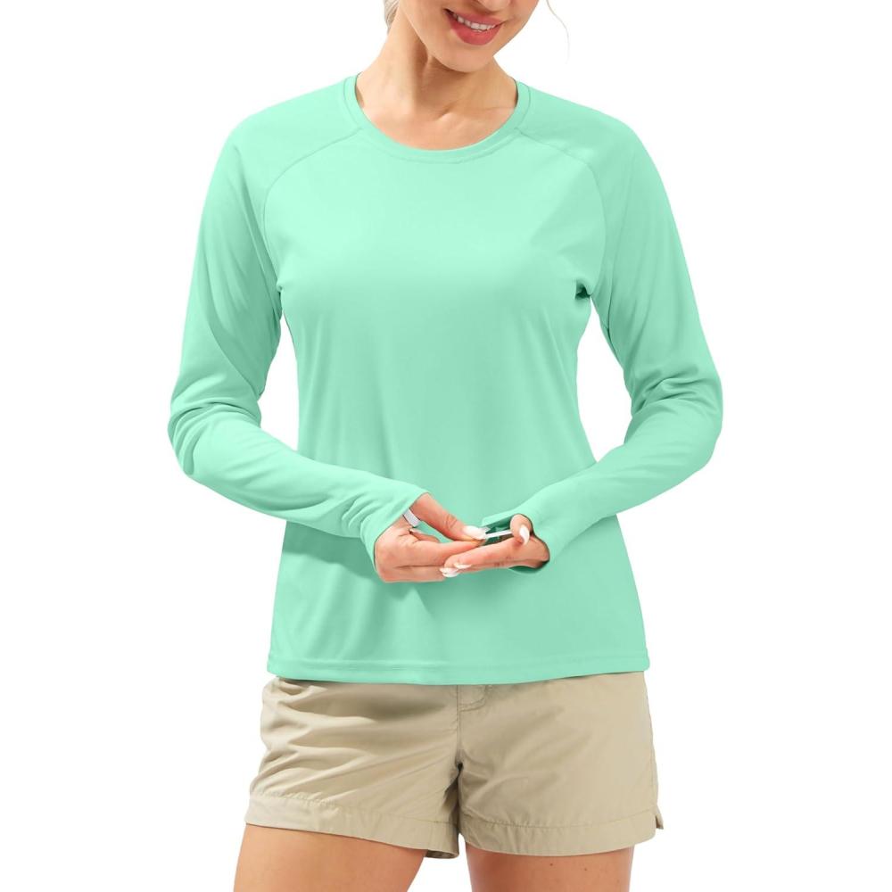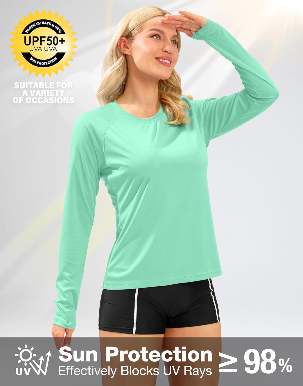 Women's UPF 50+ Sun Shirts Long Sleeve UV Protection Rash Guard Lightweight Quick Dry Workout Hiking Tops for Women(Mint Green)